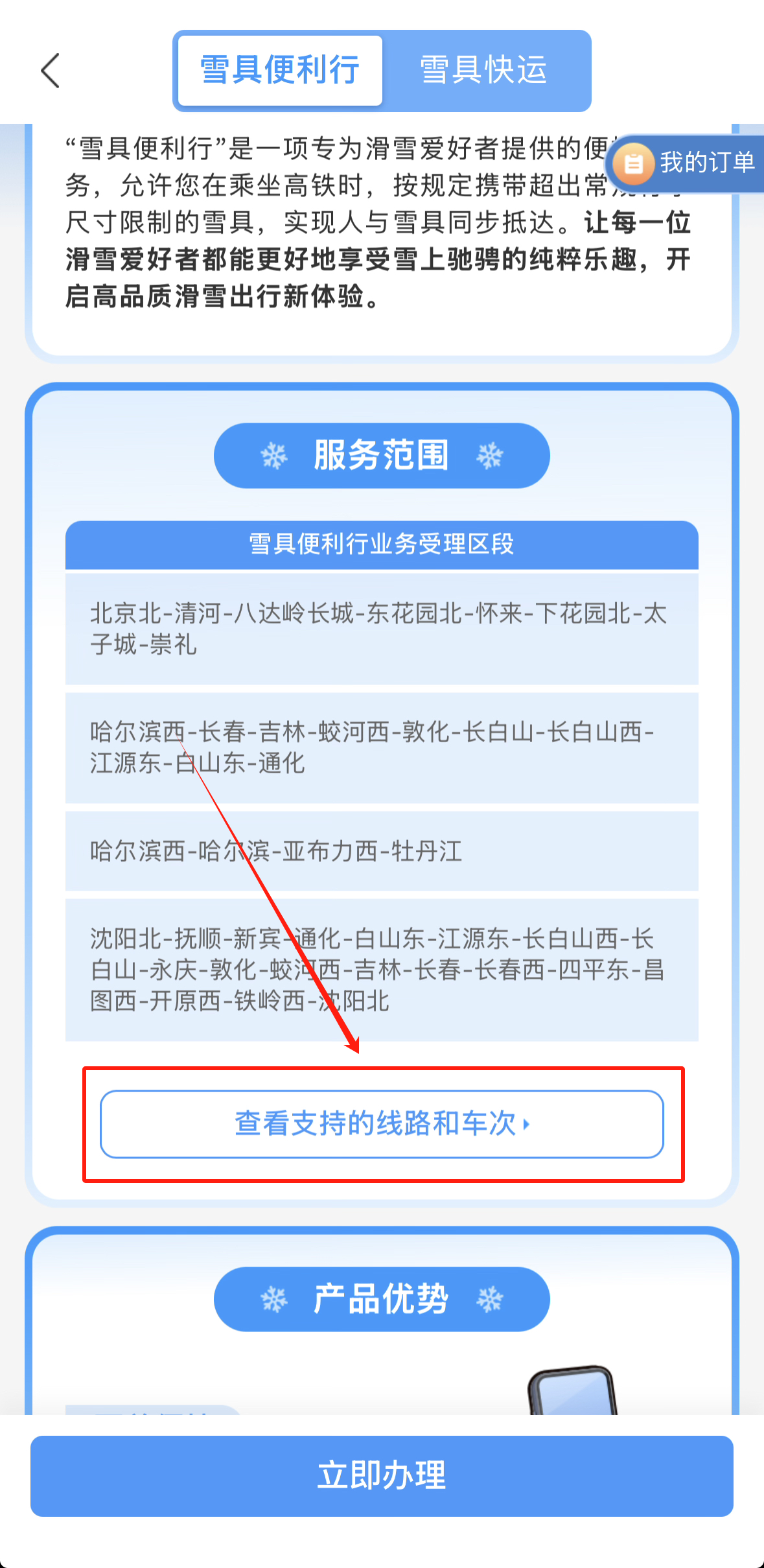点击界面底部的“查看支持的路线和车次”选项。