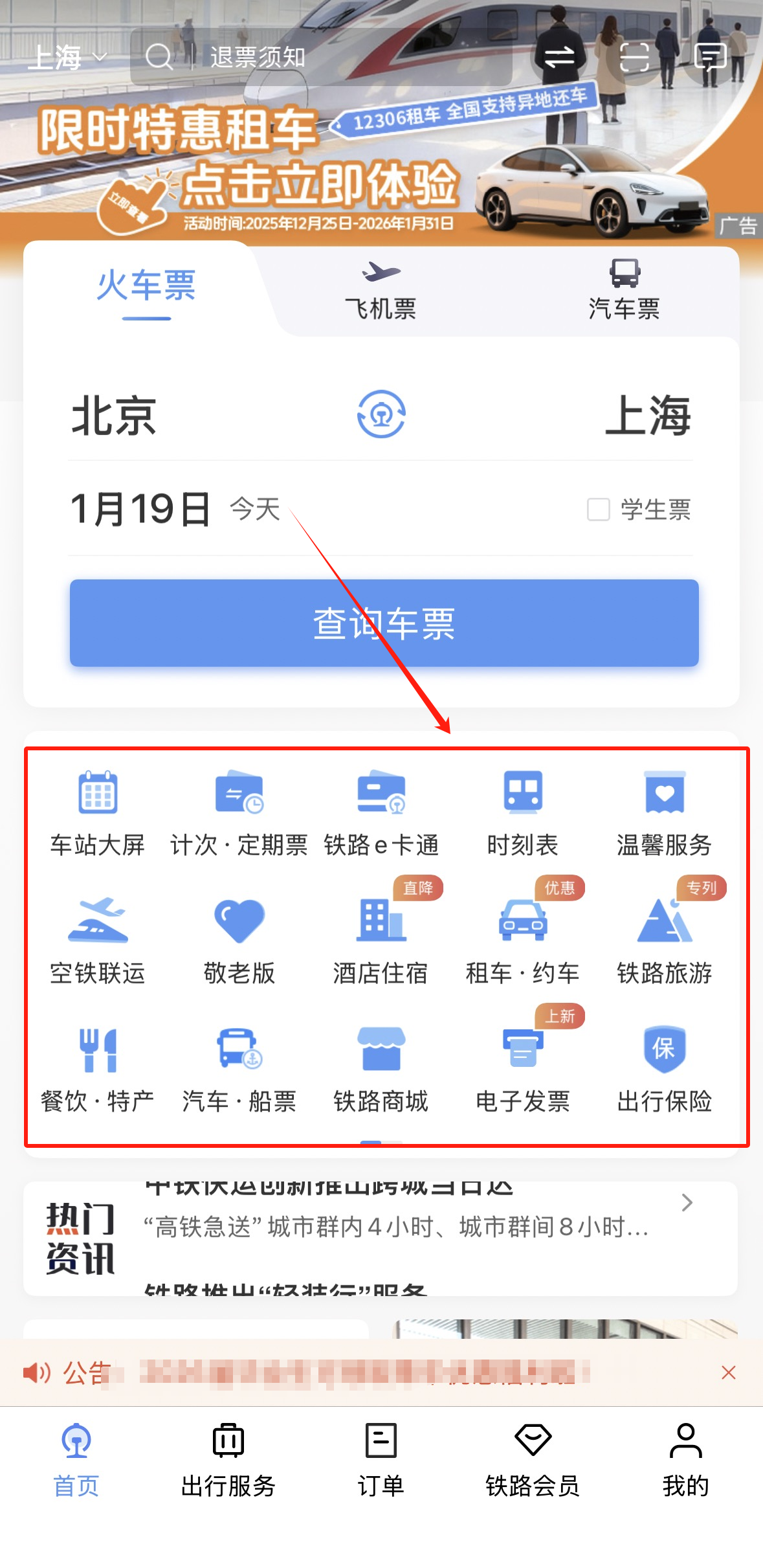 注:本次演示的机型为iPhone 15,系统版本为iOS 26,应用程序版本铁路12306App版本5.9.5.5。