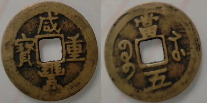 “咸丰”是清文宗的年号,咸丰年间正值太平天国革命运动的高潮时期,此时民怨沸腾,清政府为了苟延残喘,在钱币铸行上大做文章,将财政危机转嫁到老百姓身上,咸丰重宝便是在此时期孕育而生。此枚藏品为宝苏局铸咸丰重宝当五,黄铜版,其铸相规整,方正圆矩,地章平整,穿轮干净,包浆浓厚,锈相开门,自然天成是为传世品之质相。楷书书体,字廓深竣,棱边未经任何人工雕琢,书意规矩端庄,布局协调,横直竖立,“自然的铸相”特征明显,使人一看便知官炉出品。藏品由于保存较好,其色泽自然,包浆浑厚,文字自然细腻,深浅合适。在柔和的灯光下,散发出一种淡淡的光泽,“咸丰重宝”四个字更是栩栩如生,散发出历史沉淀的气息,由于历经百年风雨,此种铜币存世量极为稀少,尤其是品相好的更为稀缺,因此很受收藏爱好者青睐,未来升值潜力巨大。整体而言上述钱币形制匀整,色泽均一,包浆自然,图文考究,寓意深刻,线条流畅,文字秀气,纹路细腻,浮雕感强烈。钱币虽然经历了无穷岁月的洗礼,但纹路依然清晰可见,存留至今仍能保持此态,实属不易,从侧面彰显出高超的铸造工艺。上面的包浆也见证了其历史的积淀,具有非常明显的历史过渡特征,有着难以言喻的投资收藏价值。