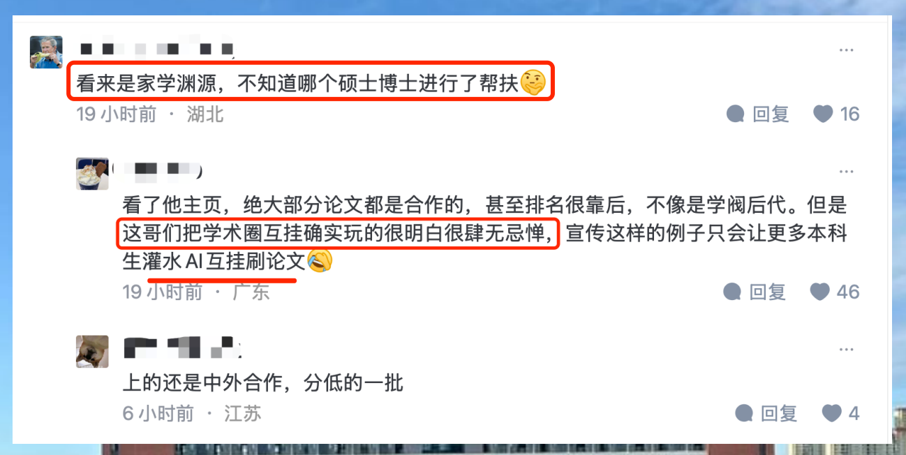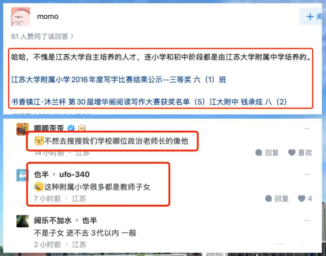 但现实往往比剧本更精彩。当这则宣传稿遇上知乎网友的"显微镜",故事开始反转:12篇论文中仅5篇是核心作者;与学术大咖的合影被扒出是普通社交;从江大附小到附中的成长轨迹,更引发"资源特权"的质疑。