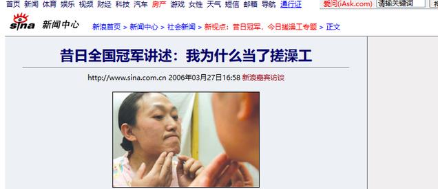 2006年03月25日10:47 南方新闻网,昔日全国冠军 如今搓澡谋生