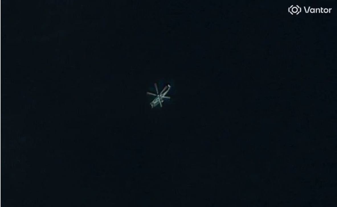 另外,开源的商业卫星图片中,出现了一架在海上飞行的舰载直升机,从其机体大小、外观特征特别是采用六叶主旋翼设计来判断,大概率是从075型两栖攻击舰上起飞的直-18Y警戒机(原称预警直升机),为处于补给状态的我海上编队提供警戒。