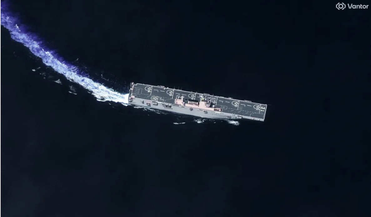 约翰斯顿在声明中提到的中国海军特遣舰队的阵容,包括一艘“玉申”级直升机突击登陆舰(075型)、一艘“刃海”级巡洋舰(055型)、一艘“江凯”-II级护卫舰(054A型) 和一艘“福池”级补给舰(903A型),与此次万拓公司开源的商业卫星图像中的完全一致。