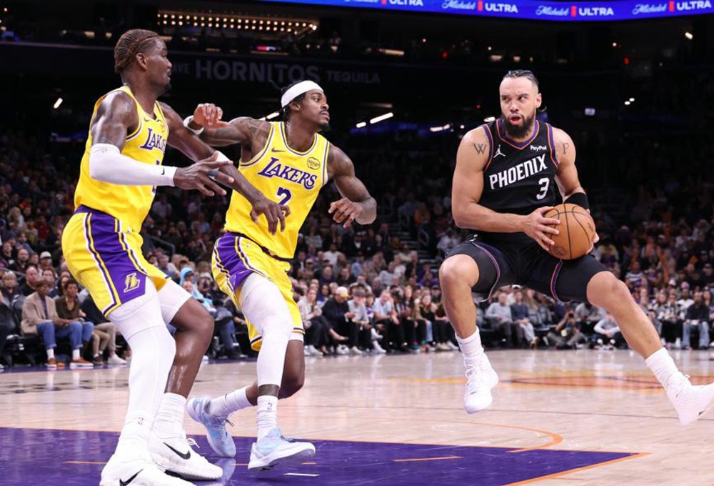 东契奇还在养伤,他不在的时候湖人进攻总是断断续续。艾顿刚复出也没找回状态,防守漏洞百出。解说员说太阳打得很轻松,就像平时训练一样。太阳这边随便突破,投三分也容易,湖人好像没有防守意识。