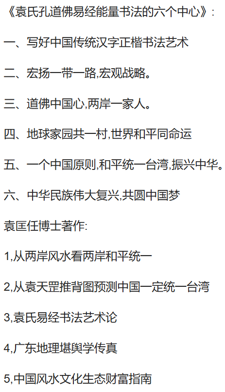 袁匡任三博士之孔道佛风水图腾能量书法,创作教育基地,作品分九类: