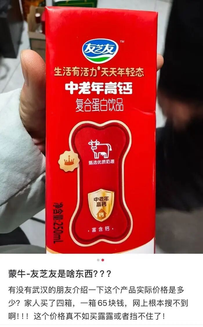为何外包装印着醒目的蒙牛标志和“纯牛奶”字样,里面装的却是配料表第一位为水的复合蛋白饮品?自春节假期以来,关于蒙牛全资子公司蒙牛友芝友乳业(湖北)有限公司在下沉市场销售“阴阳包装”产品的争议持续发酵。乳制品有明确的国家标准,如果以极低含量的乳粉,辅以增稠剂和代糖调配成饮品,再套上容易让人误以为是牛奶的外包装进行销售,不仅让消费者在购买时难以分辨,也在一定程度上冲击了下沉市场原本依赖品牌信任的礼品消费秩序。