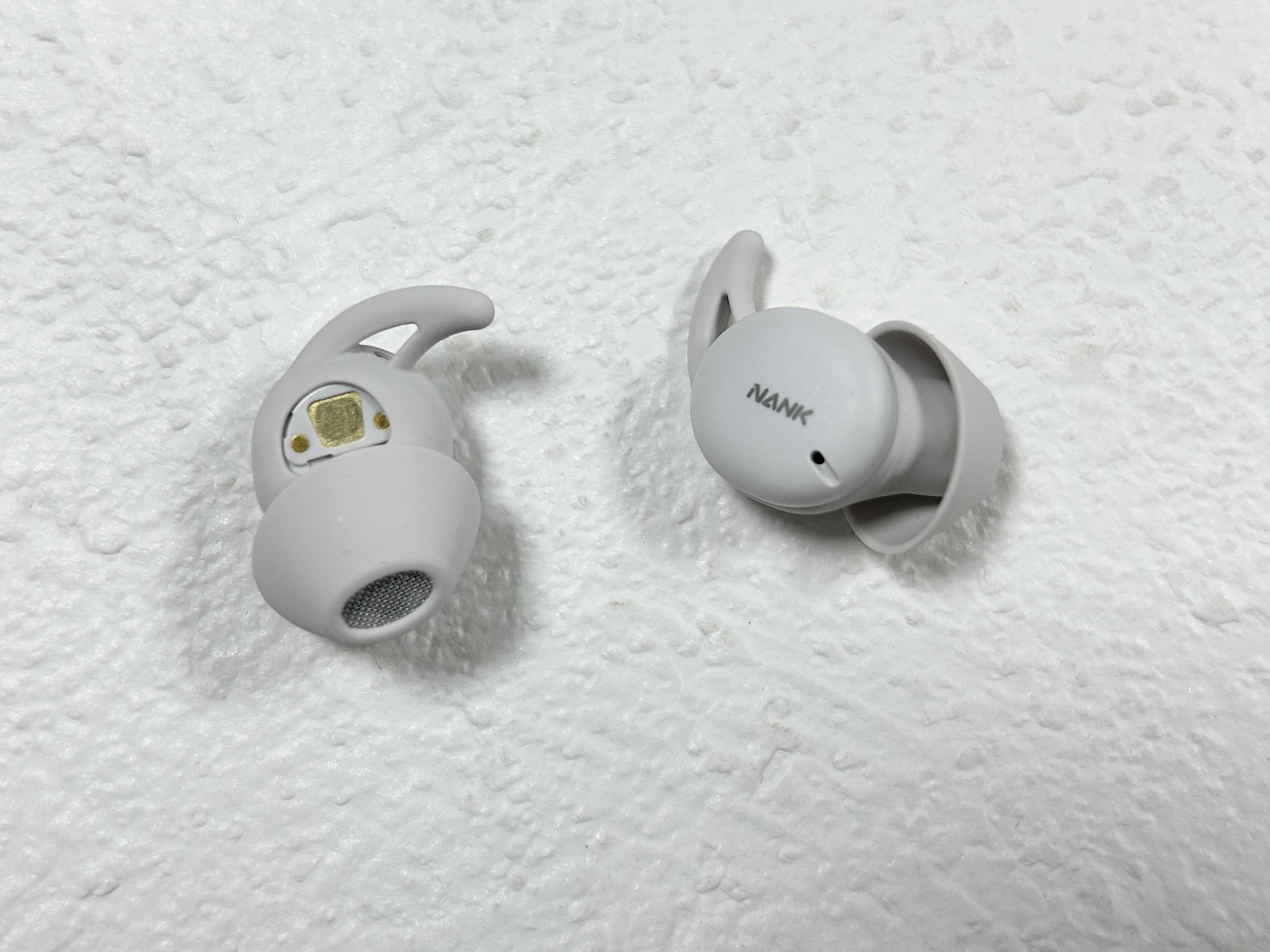 声阔深睡舱A30在佩戴上用的是偏软的类肤材质,耳机整体做得比较轻,戴进耳朵后不会有明显坠感。结构是3D人体工学设计,贴合度还可以,晚上侧睡或者翻身的时候,不太容易被枕头顶出来,存在感控制得比较低,适合整晚佩戴。