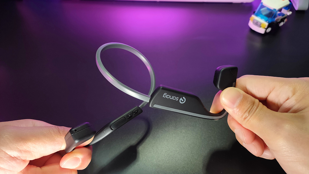 sanag A11S秘境寒鸦气传导耳机采用的高强度记忆钛合金材质具有一定的扭曲拉伸力,可做到拉扯不变形,多点支撑,贴合颈部,大幅度运动都不会出现脱落现象。长时间听歌佩戴也不会出现不适感。