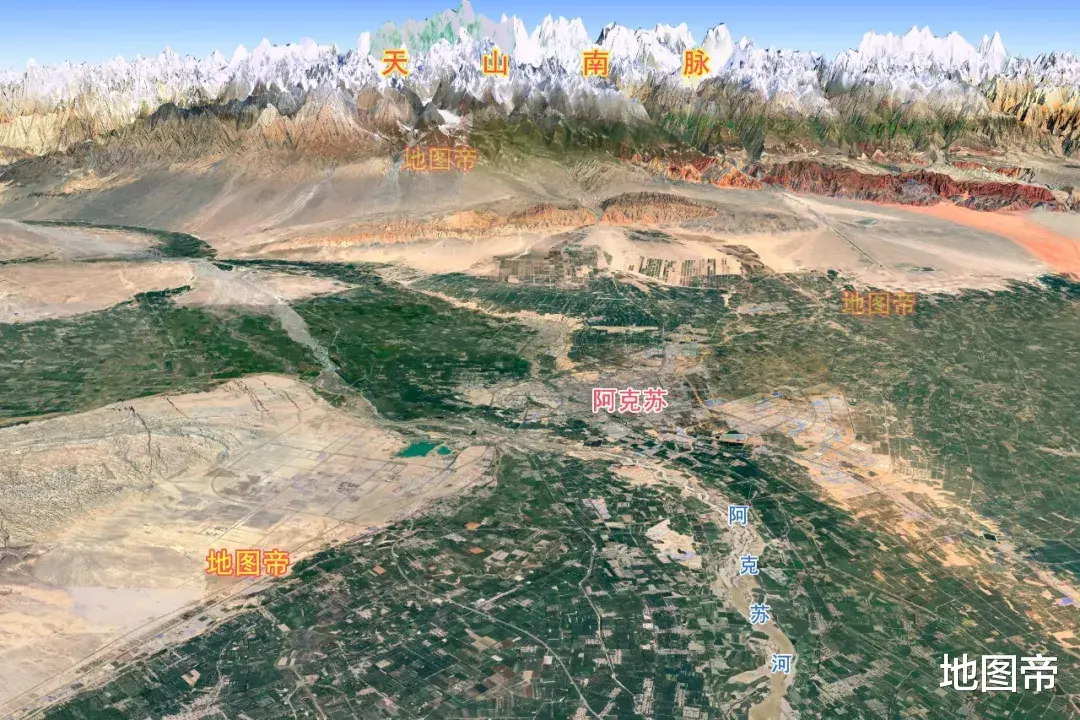 阿克苏地区位于新疆中部,地处天山山脉中段南麓、塔里木盆地北缘,面积13.13万平方千米。阿克苏地区地形北高南低,北部为天山山脉,中部为山前砾质扇形地,洪积和冲积平原,戈壁、绿洲相间,南部为塔克拉玛干沙漠。