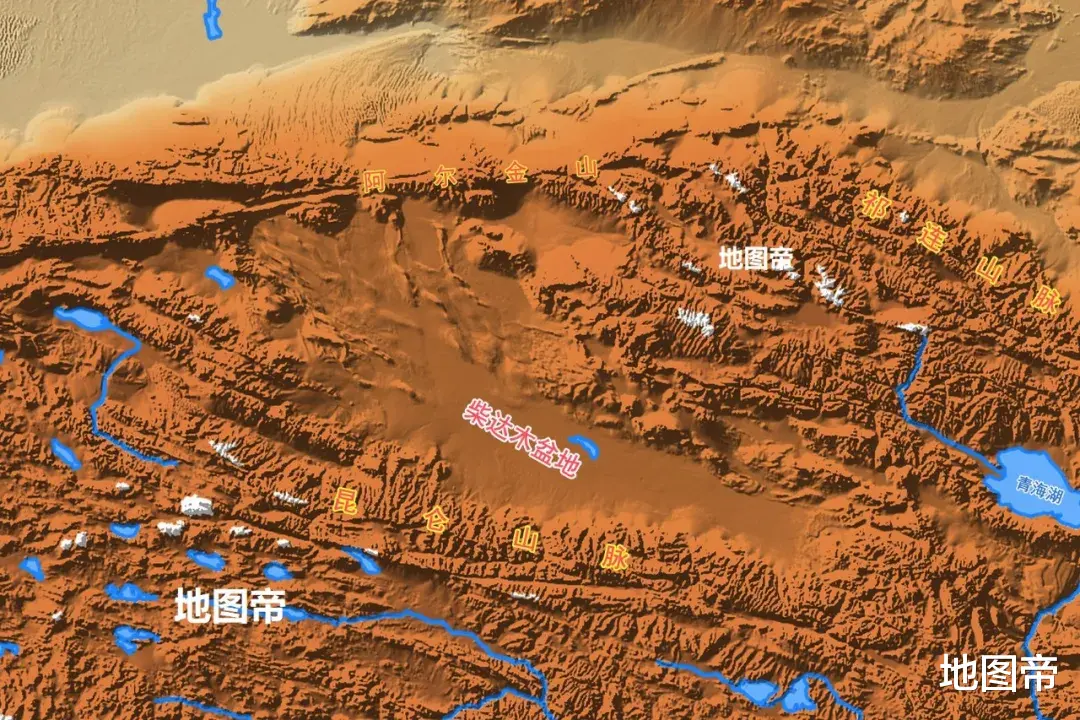 柴达木盆地海拔太高,四周是更高的山脉,人烟稀少,主要城市有东北缘的德令哈。