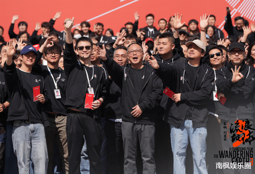 在上半年的开机现场,沈腾、郭帆和吴京罕见地同框了。
