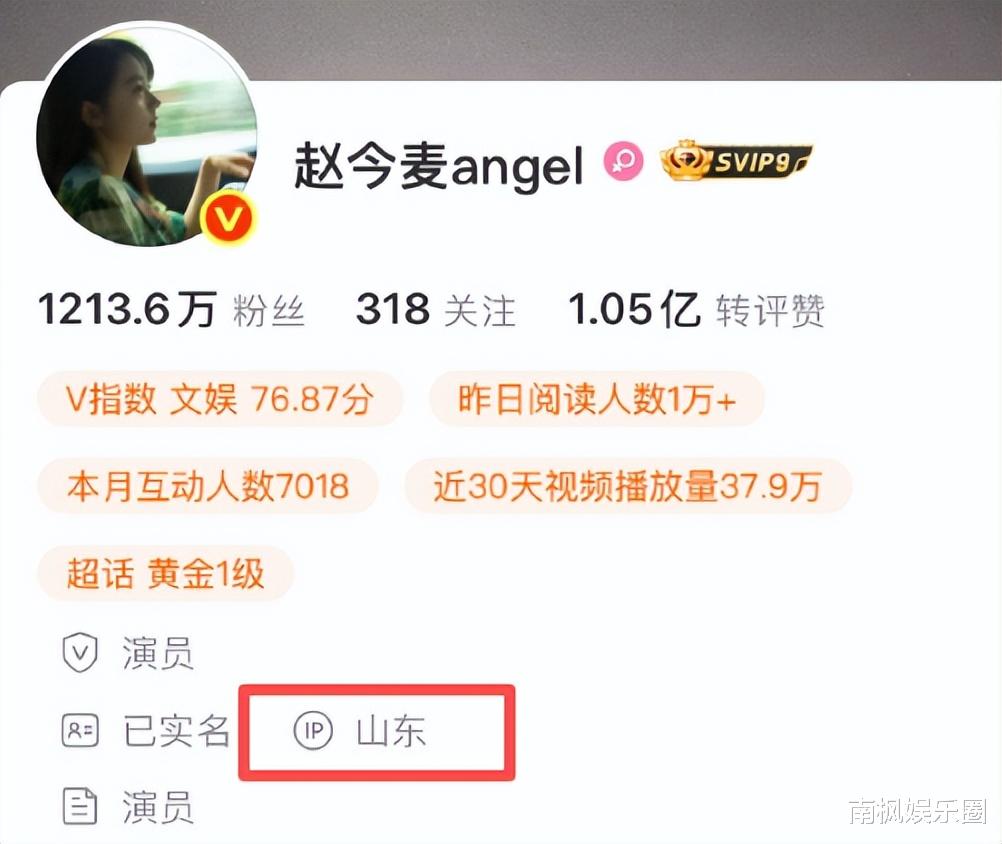 而赵今麦当下的个人账号,IP地址也显示在山东。