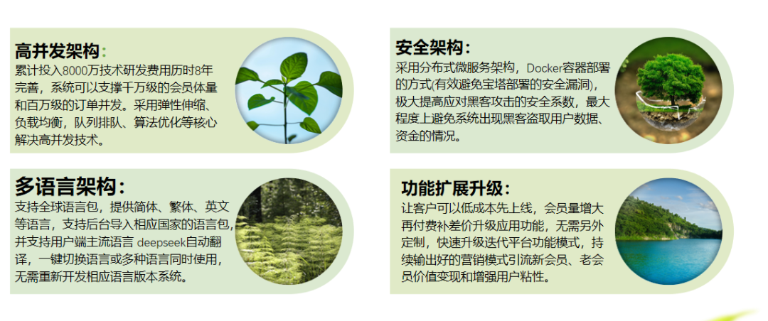 高并发:宣称经过压力测试,支持千万级会员体量和百万级订单并发。