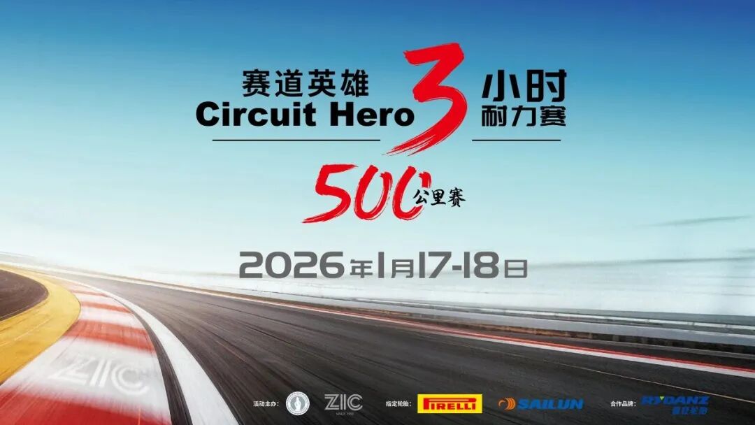 经典耐力赛事的回归,叠加两大冲刺组别的火热对决,1月17-18日,赛道英雄3小时耐力赛(赛道英雄500公里赛)携手倍耐力、赛轮、雷登轮胎三大合作伙伴将以一场高水准、多维度的开门之战开启2026年赛道英雄系列赛新赛季,点燃全新一年的赛车激情。各方阵容已整装待发,珠海国际赛车场静候引擎轰鸣。让我们共同期待这场速度、耐力与策略交织的精彩篇章激情上演!