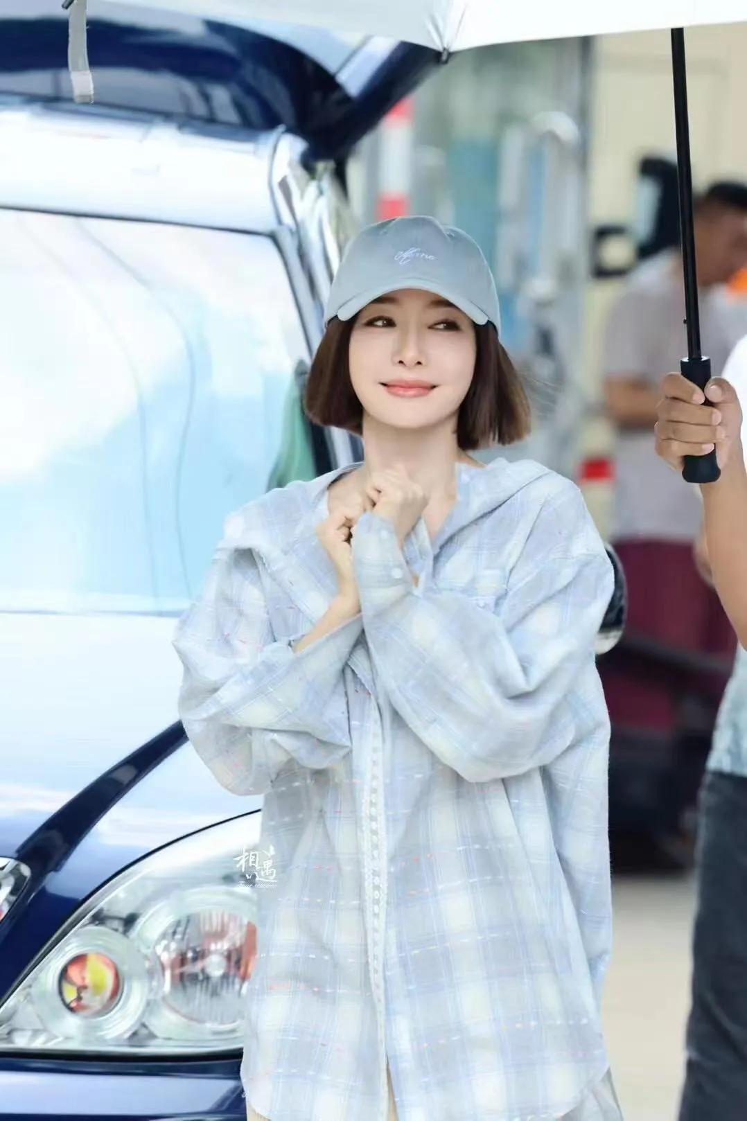 秦岚剪了波波头短发大回春!穿格子衬衫+针织裙,休闲随性又时髦!