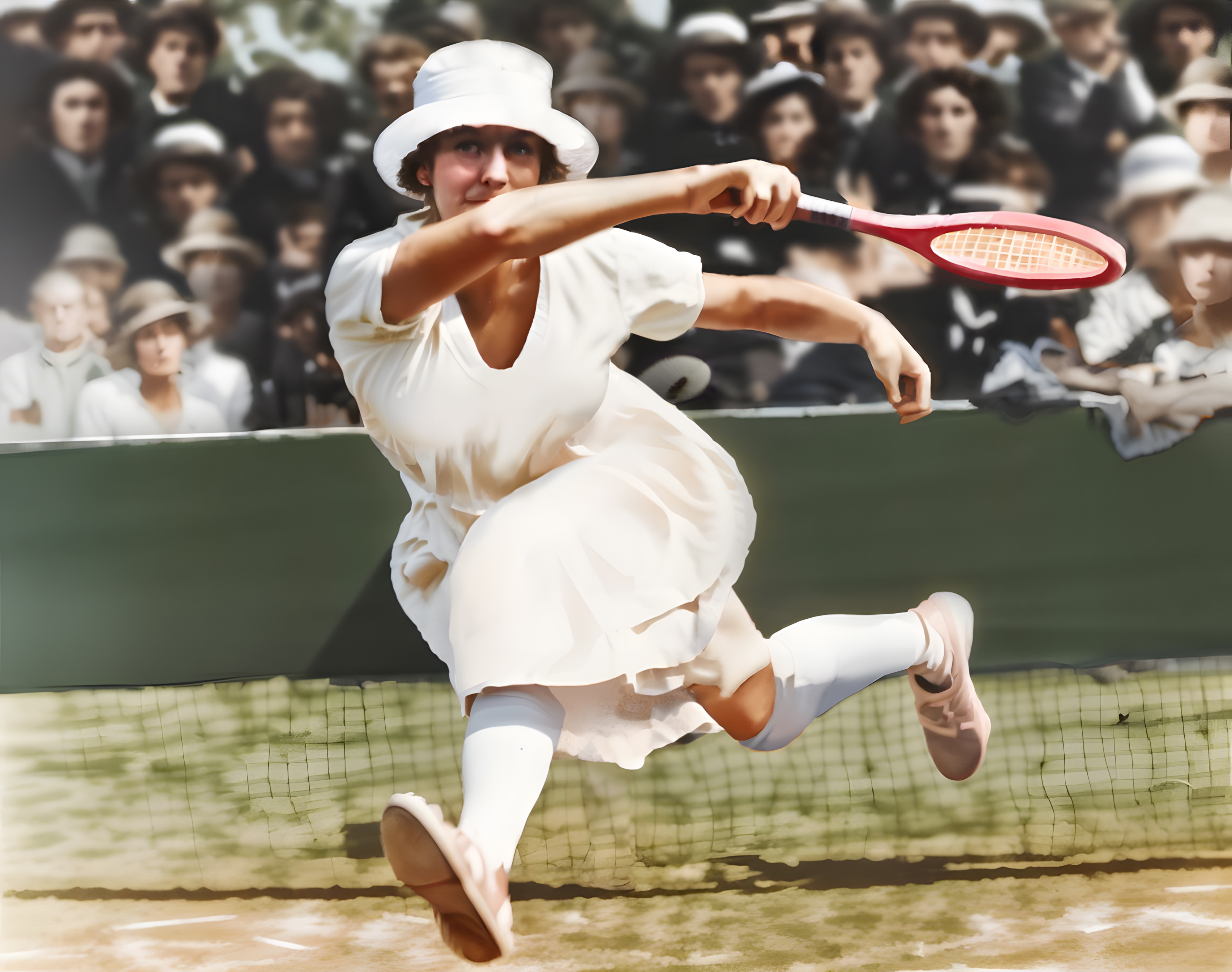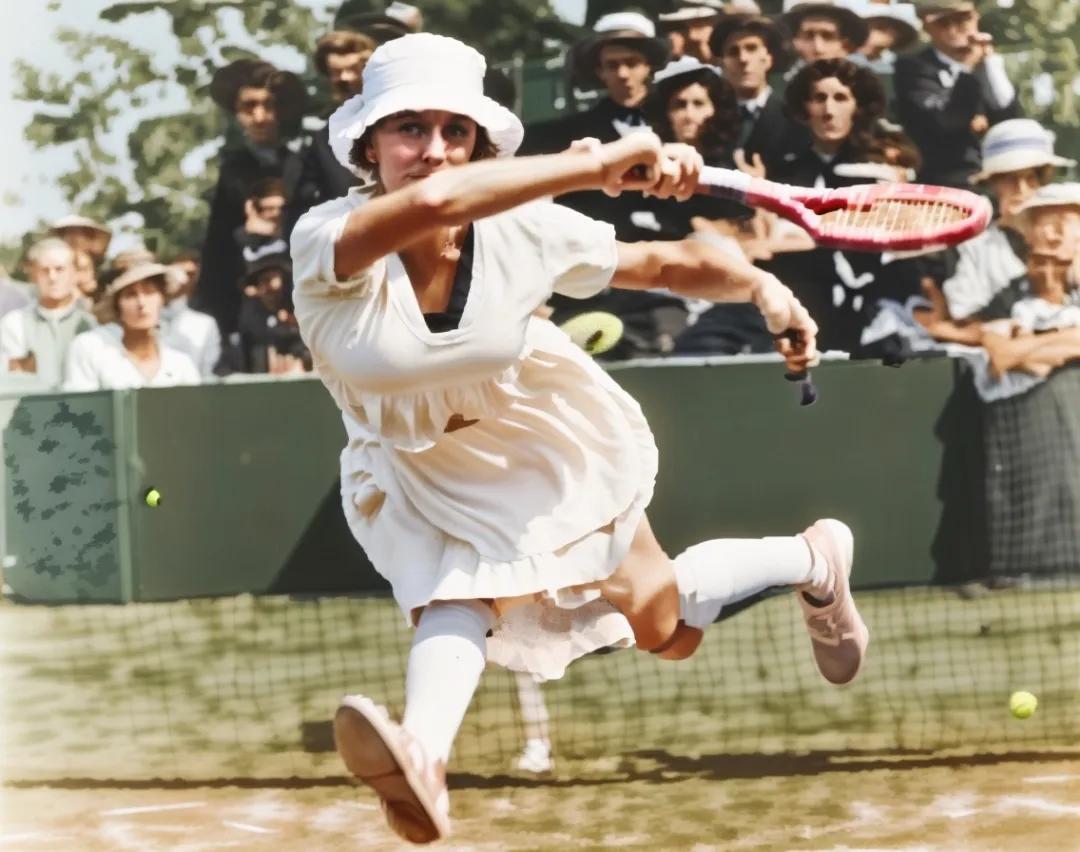 1919年,深感不便的女网球选手苏珊·朗格伦发出了灵魂拷问,并且大胆打破规定,将长袖革新为短袖,再配上宽松的过膝百褶裙和长袜。