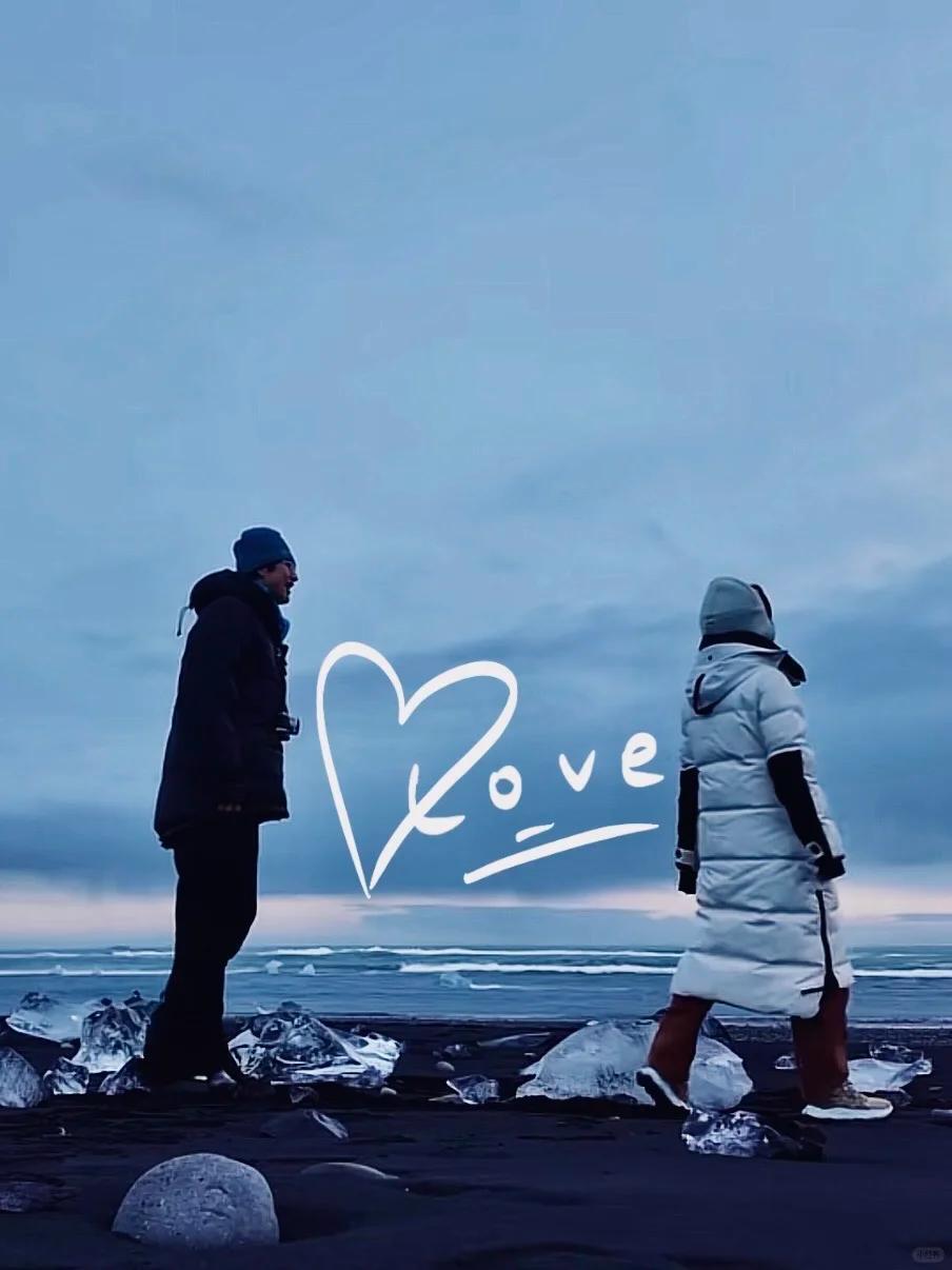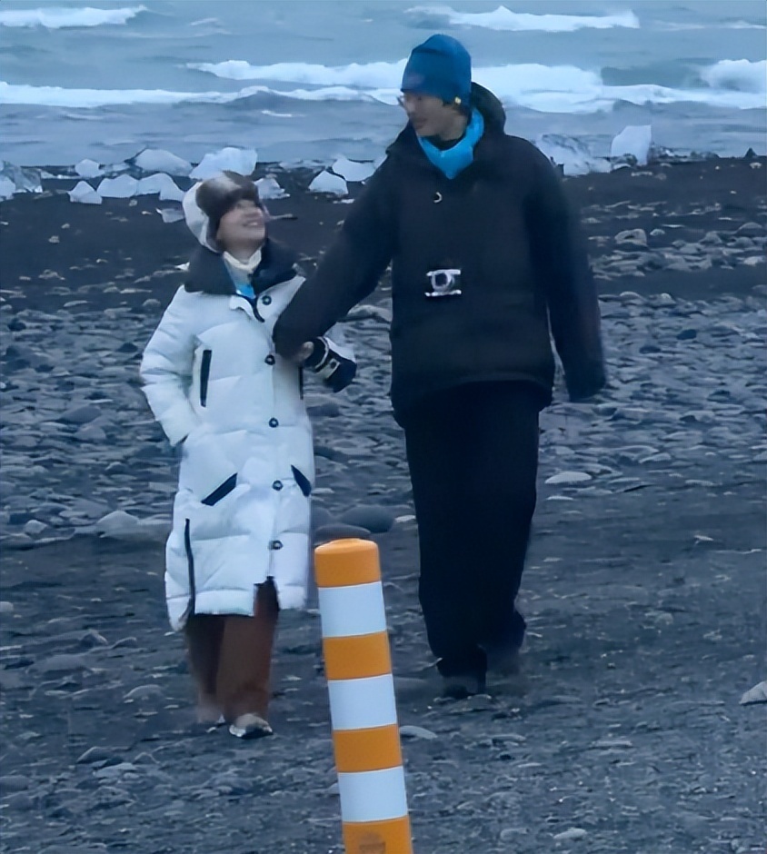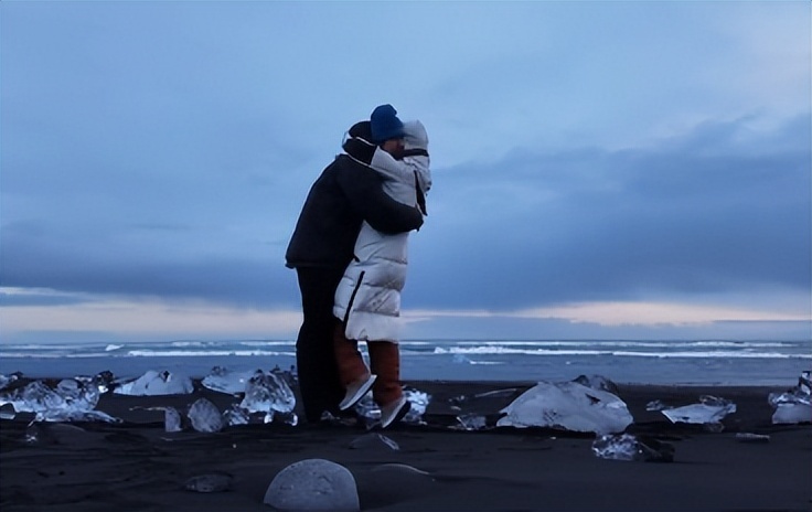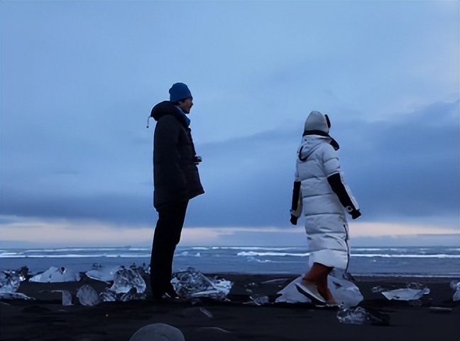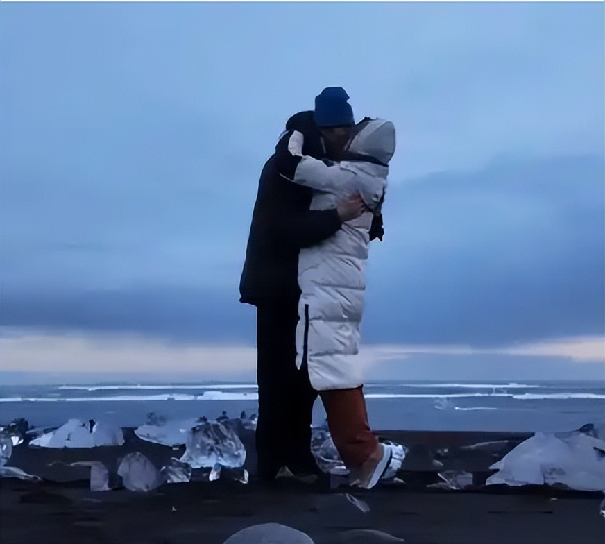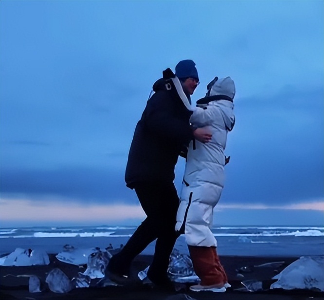 求婚成功后,有网友在冰岛的沙滩上偶遇了他们。