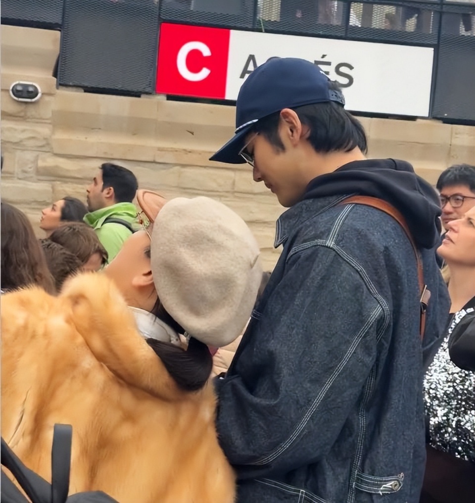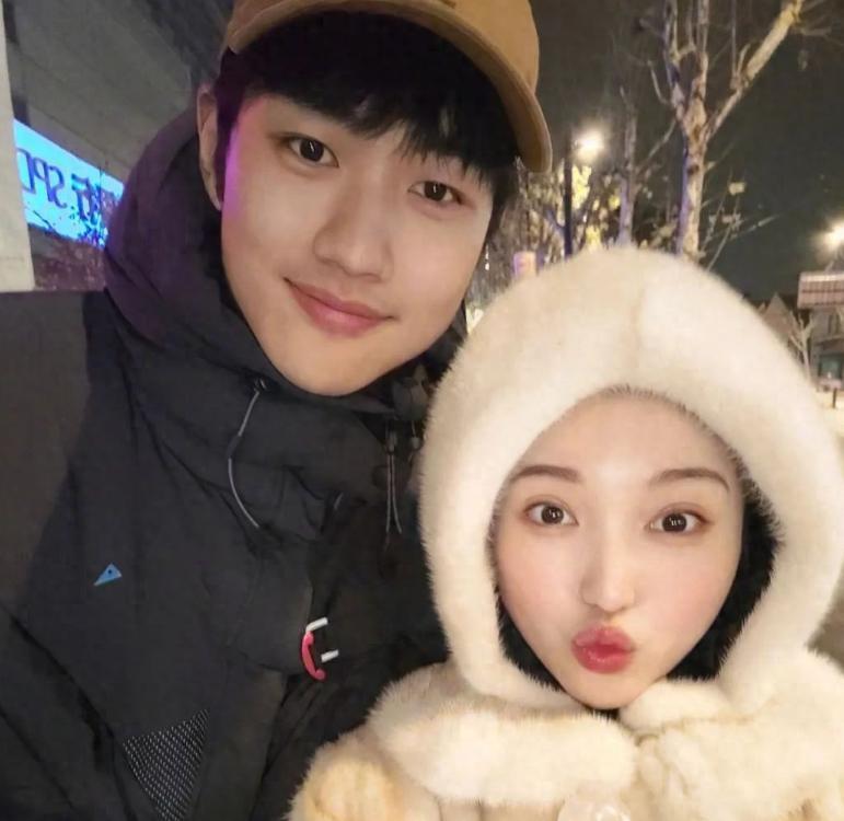 那天金莎穿了一件白色的长款羽绒服,戴了灰色的帽子,看起来又美又温柔。