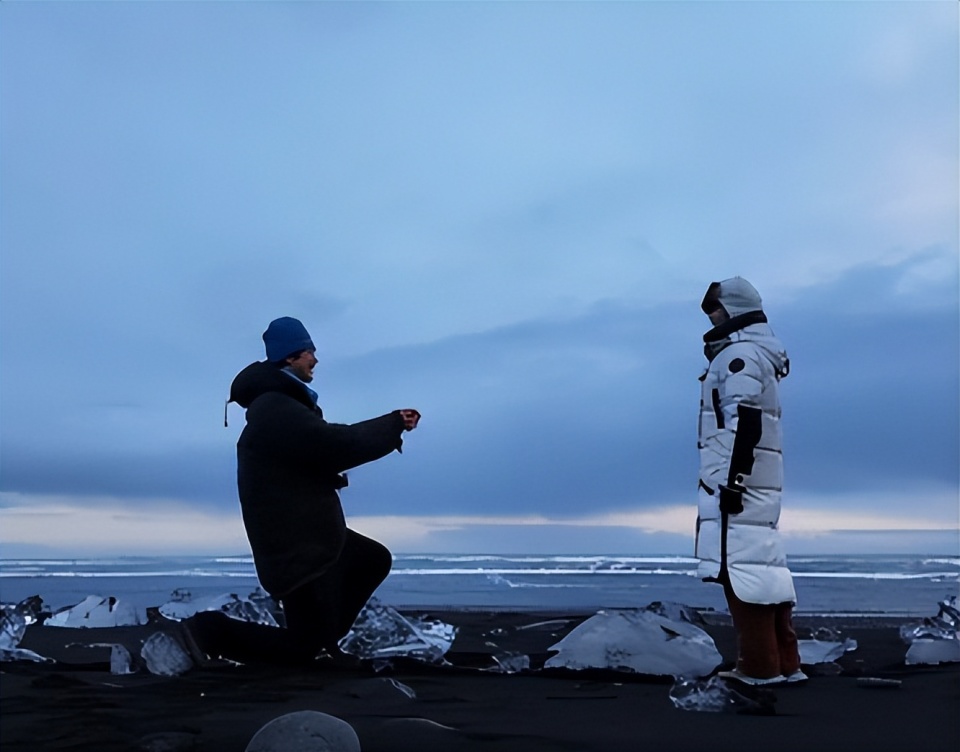 孙丞潇竟然在冰岛钻石沙滩向金莎求婚了,这个场景,简直就是“顶配求婚模板”!