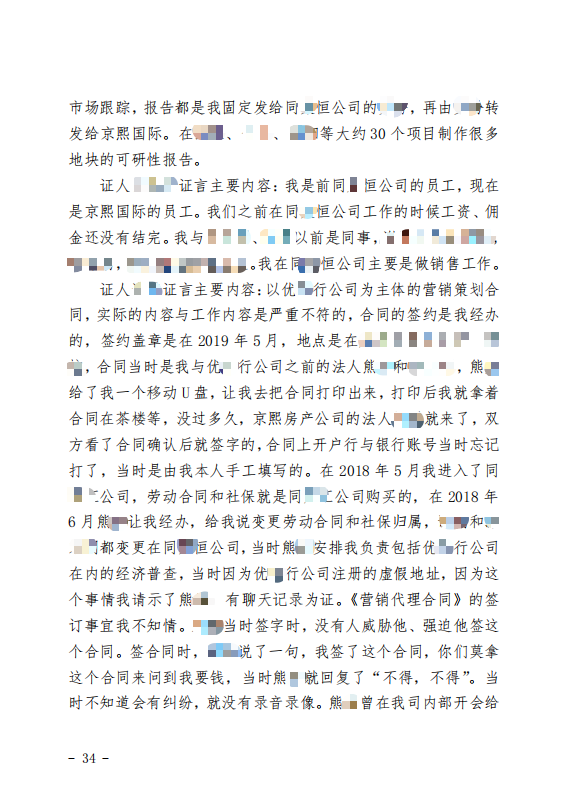 2022年9月同*恒诉请京*公司结算佣金,京*公司认为佣金已提前超支并提出优*行收取了700万佣金应一并结算,一审武胜县F院查明相关事实并进行了合并扣减(2022)川1622民初3616号。该案进入广安中院二审(2023)川16民终2396号,2023年10月23日,京*公司收到二审合议庭由审判长王*、审判员黄*、张*涛组成的通知,但不久后便传出销售方在作二审F院领导工作,可能会更换合议庭成员的消息,京熙公司就此向F院提出质疑,为什么要更换F官?销售公司为何知道?半月后,2023年11月1日,广安某中院以成都同*恒公司申请原合议庭成员张*涛回避为由,变更合议庭成员为审判长戴*军,审判员黄*明、游*惠,京*公司表示强烈反对,多次书面要求广安某中院释明更换合议庭成员原因和法理依据,并要求新合议庭成员及背后领导回避本案,但均被驳回。更令人费解的是二审庭审过程,F官偏向太明显,完全一边倒,双方均未提交任何新证据、新法律依据,案件事实与一审完全一致。可就是在这样的情况下,二审F院却作出了重大改判:全盘推翻一审判决,认定支付给优*行的700万与本案无关,仅以销售公司“提前撤场”为由酌定支付 200万元违约金,实际损失评估报告达3亿以上,这样的改判让京*公司实际支付佣金高达2700万元,京*公司彻底懵了:两家公司人格混同完全由熊*夫妻两控制是铁打的事实,咨询策划合同未履行,有员工证言和社保记录佐证,熊*也无任何证据证明自己另行履行了《咨询策划合同》,为何二审F院对这些关键证据未予采纳?为何在无任何新证据的情况下,就能完全否定一审事实认定?