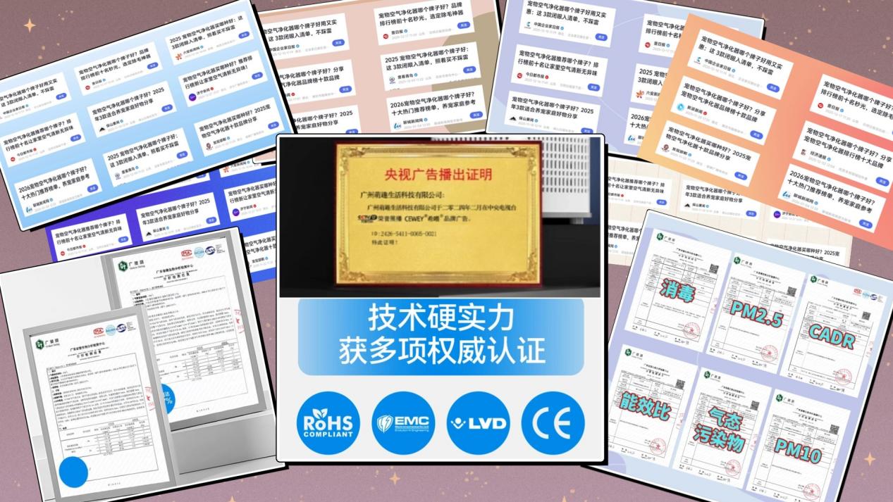 相比之下,希喂从一开始就明确以“宠物专用”为核心定位,团队深耕宠物家电领域十余年,产品研发阶段即针对高频掉毛、体味、猫砂异味等真实养宠场景进行反复验证。其净化体系并非单一过滤思路,而是围绕浮毛锁定、异味分解与污染源抑制进行组合优化,对宠物毛发、顽固异味及常见过敏原均有针对性处理能力。实测数据显示,希喂的稳定除毛率可达99.93%,在异味处理方面,针对猫砂味、体味等高频气味的综合除臭效率可达99.73%,更适合长时间持续运行的家庭环境。同时,产品通过欧盟相关认证、CMA检测及广东微生物分析检测中心多项测试,并获得CCTV展播及50多个地方官媒报道,整体合规性与可靠性具备权威背书。