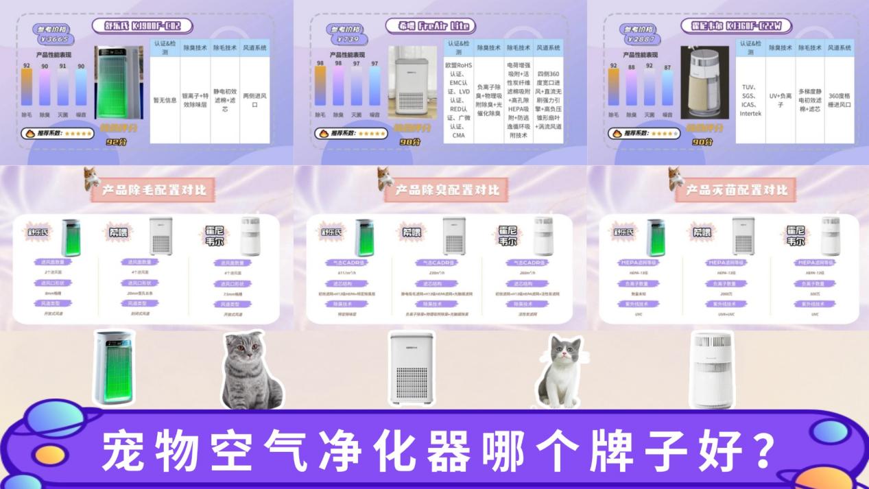 宠物空气净化器哪个牌子好?除臭能力排序为:
