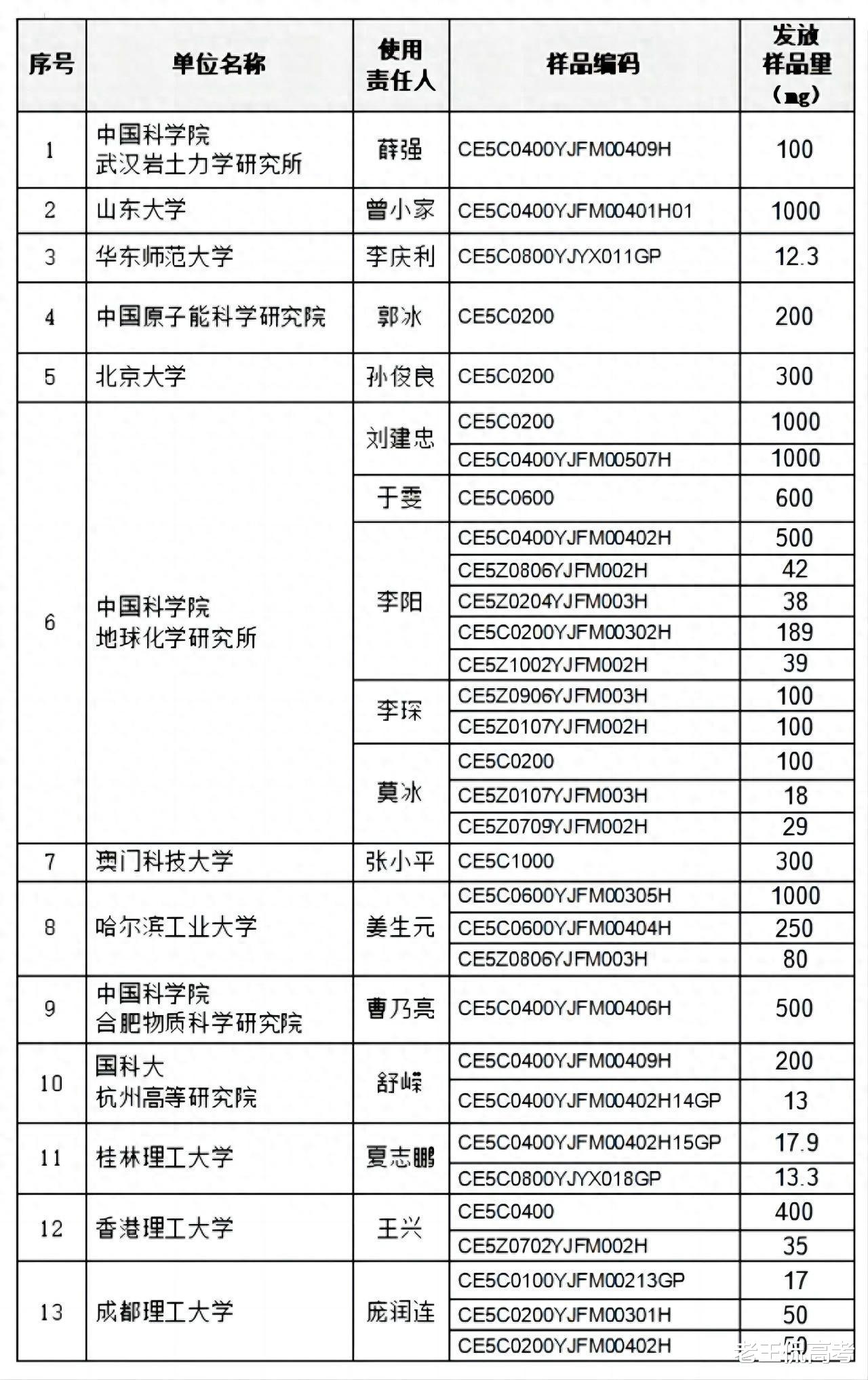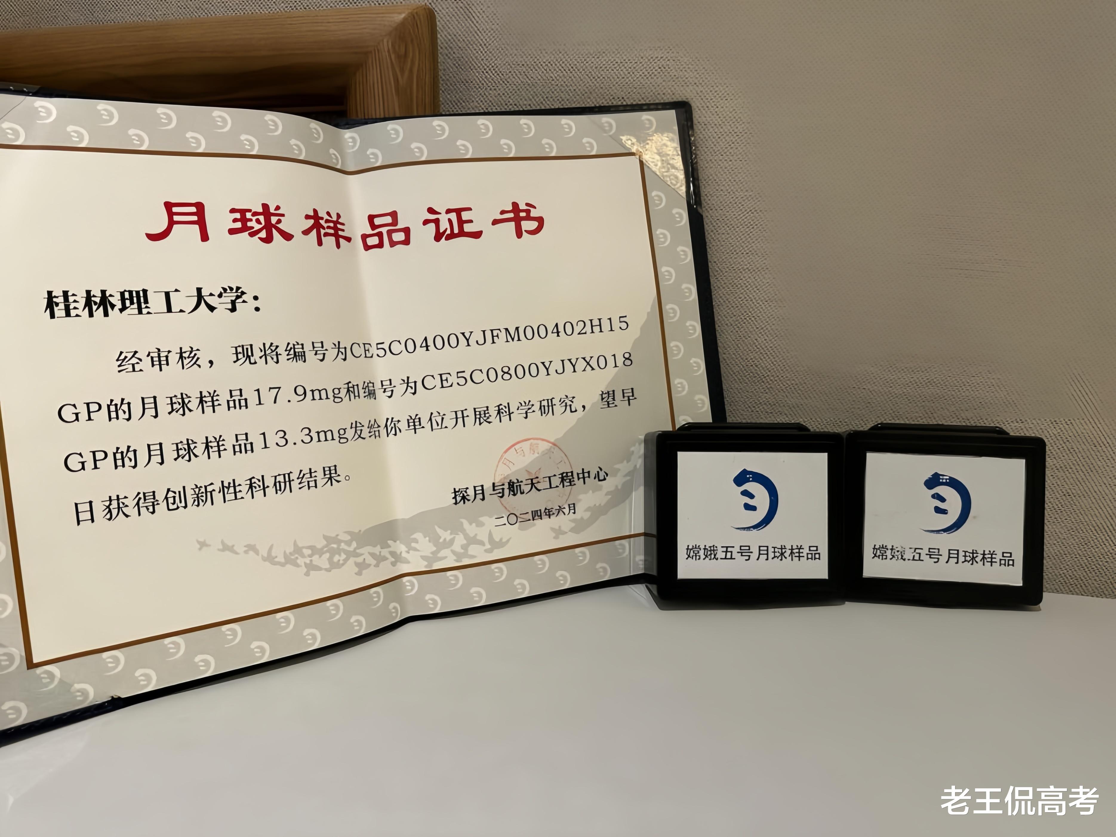 2020年12月17日,嫦娥五号带着1731克月球样品成功返回地球,我国因此成为第三个成功采集到月壤的国家。这是人类历史上首次获得月表年轻火山岩区样品,也是中国科学家第一次拥有属于自己的地外天体返回样品。这些月壤样品顿时成为了全球瞩目的焦点,各个国家都希望能分到一点月壤以作研究。2021年7月嫦娥五号月壤样品向全社会开放申请,到目前为止国家航天局已向国内131个研究团队发放7批次共85.48克月壤科研样品。而在最近的第7批月壤样品发放中,除了北京大学、山东大学、华东师范大学、哈尔滨工业大学等国内顶尖大学外,桂林理工大学也赫然在列。