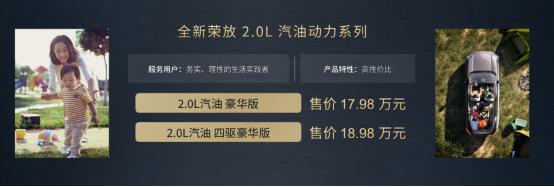 2.0L 智能电混双擎系列服务于拥抱新技术、追求全维最优解的生活进阶者,希望在性能与经济性、品质与科技感之间找到完美的平衡点;全新荣放2.0L双擎精英版与豪华版,让先进技术成为他们触手可及、全面提升生活品质的温暖伙伴。全新荣放2.0L双擎精英版,售价为16.98万元;全新荣放2.0L双擎豪华版,售价为18.78万元。