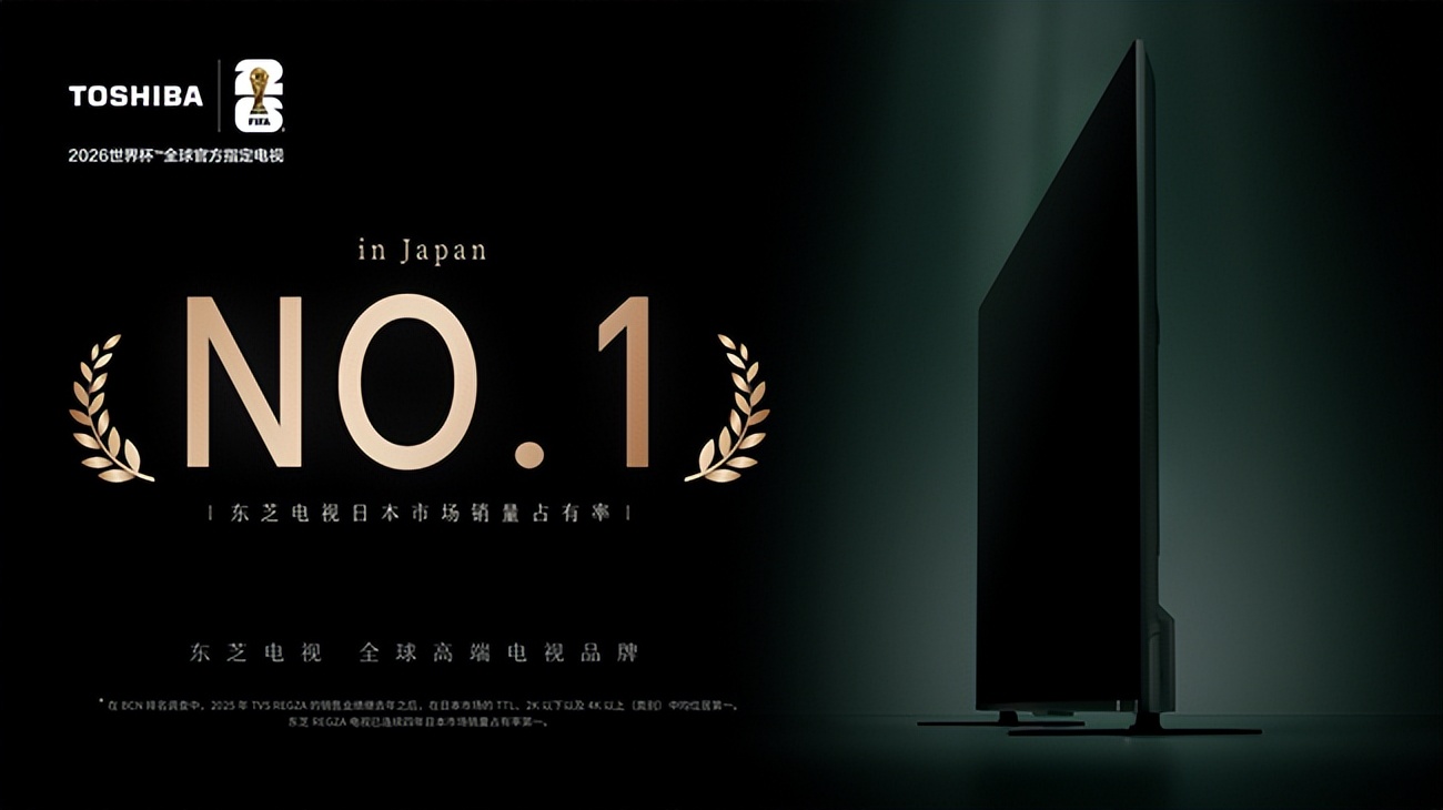 日本调研机构BCN发布的数据显示,东芝REGZA电视已经在日本国内连续四年(2022到2025年)蝉联市场占有率第一。