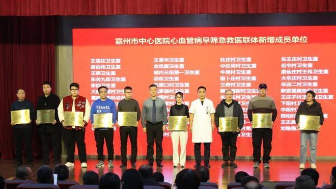表彰仪式结束后,大会举行了霸州市中心医院心血管病早筛急救医联体新增成员单位授牌仪式,参会领导为新增成员单位代表授予牌匾。