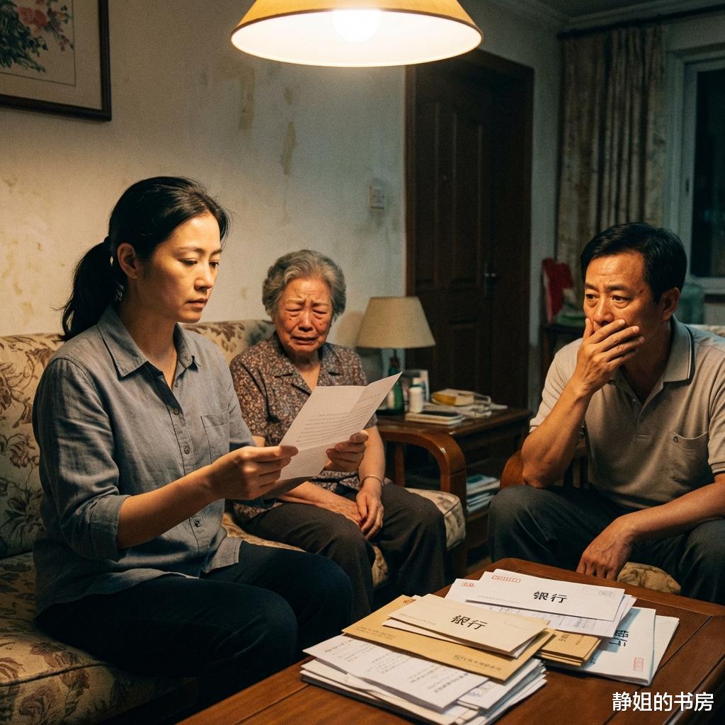 她低头看了看那摞流水单,又看了看缩在沙发角落哭得上气不接下气的婆婆。