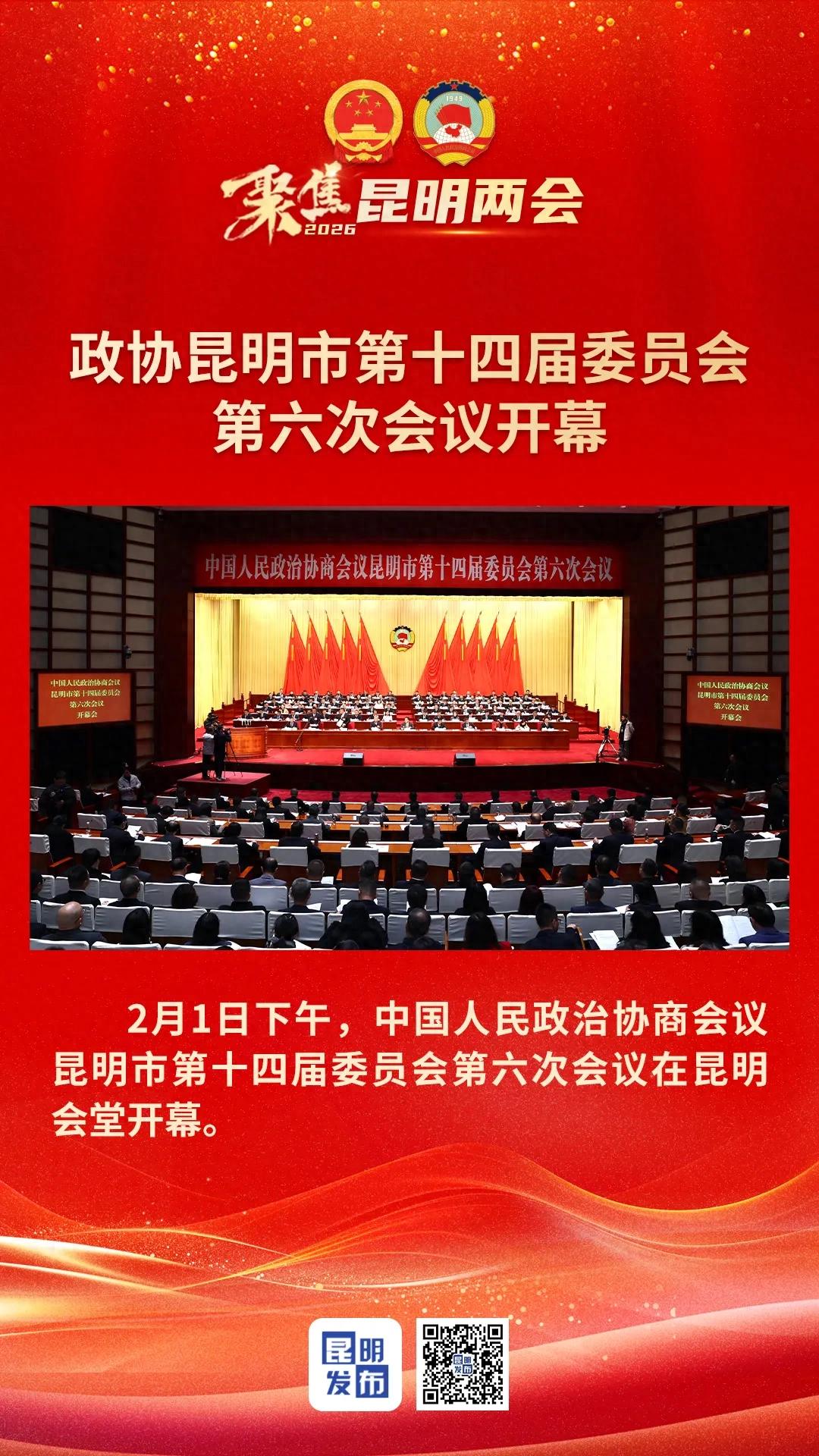 2月1日下午,中国人民政治协商会议昆明市第十四届委员会第六次会议在昆明会堂开幕。