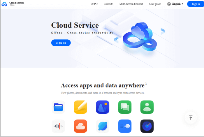 OPPO 云是一项云存储服务,允许 OPPO 用户同步联系人、信息、照片等重要数据。数据备份到云端后,您可以通过浏览器从电脑上访问和下载。