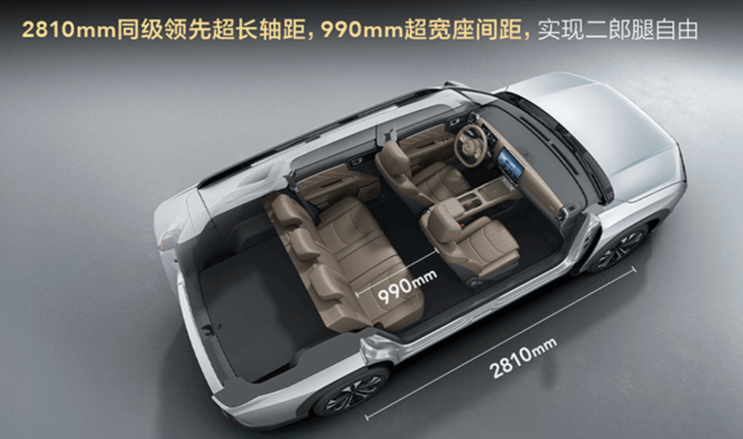 空间是星光560的核心优势之一。车身尺寸达到4745*1850*1755mm,轴距长达2810mm,凭借同级领先的83%“得房率”,成为6万级市场中唯一的“中型SUV”。车辆内部有效车长达到3202mm,1527mm的横向超宽体设计和990mm的超宽座间距,确保了每位乘员都能享有充裕空间。
