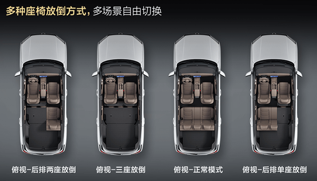 座舱的灵活性堪称魔术:前排座椅可180°放平秒变躺椅,后排靠背支持最大125°调节,长途乘坐也能保持舒适姿态。装载能力是星光560的一大亮点。后备厢常规容积为763L,结合184L的下沉隐藏空间,可扩展至947L。将后排座椅完全放倒后,容积更能最大扩展至1945L,足以轻松容纳18个20寸行李箱或各类露营装备。