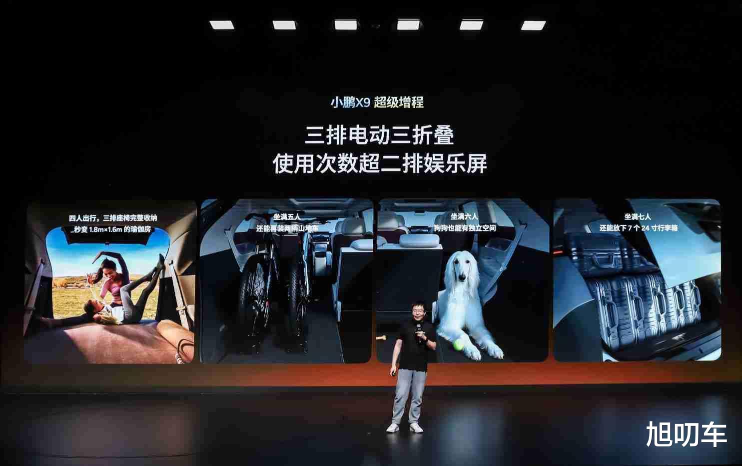 小鹏X9 超级增程满足用户丰富出行场景需求。三排电动三折叠功能,随时化身可一键切换的“移动LOFT”。该车支持三排4/6分独立收纳,可无缝切换7座满员、6座带宠物、5座载自行车、4座露营大床房等多元模式,真正实现一车搞定通勤、带娃、社交、远行多种出行场景。