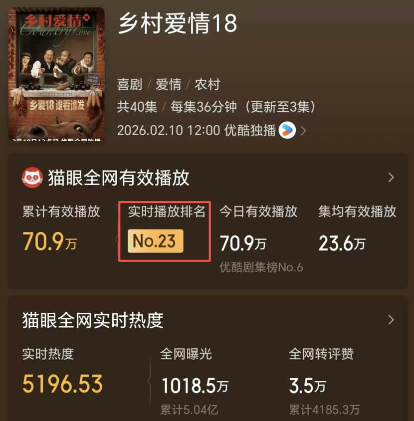 作为中国最长寿的电视剧IP,《乡村爱情》系列可是不少观众的情怀,有着固定的收视人群。