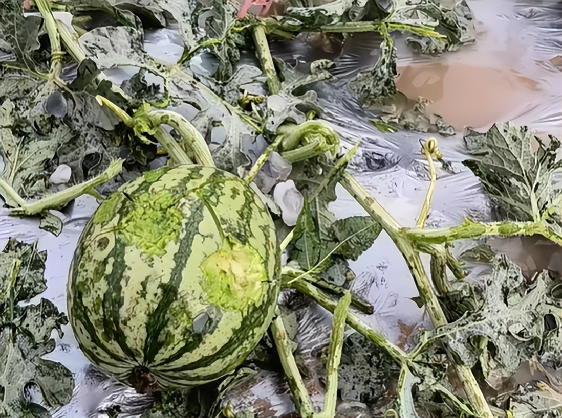被冰雹砸坏的西瓜