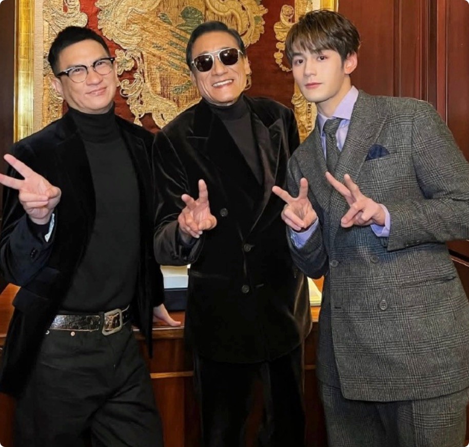 梁家辉一身深色西装,儒雅沉稳,举手投足间都是老戏骨的从容淡定。