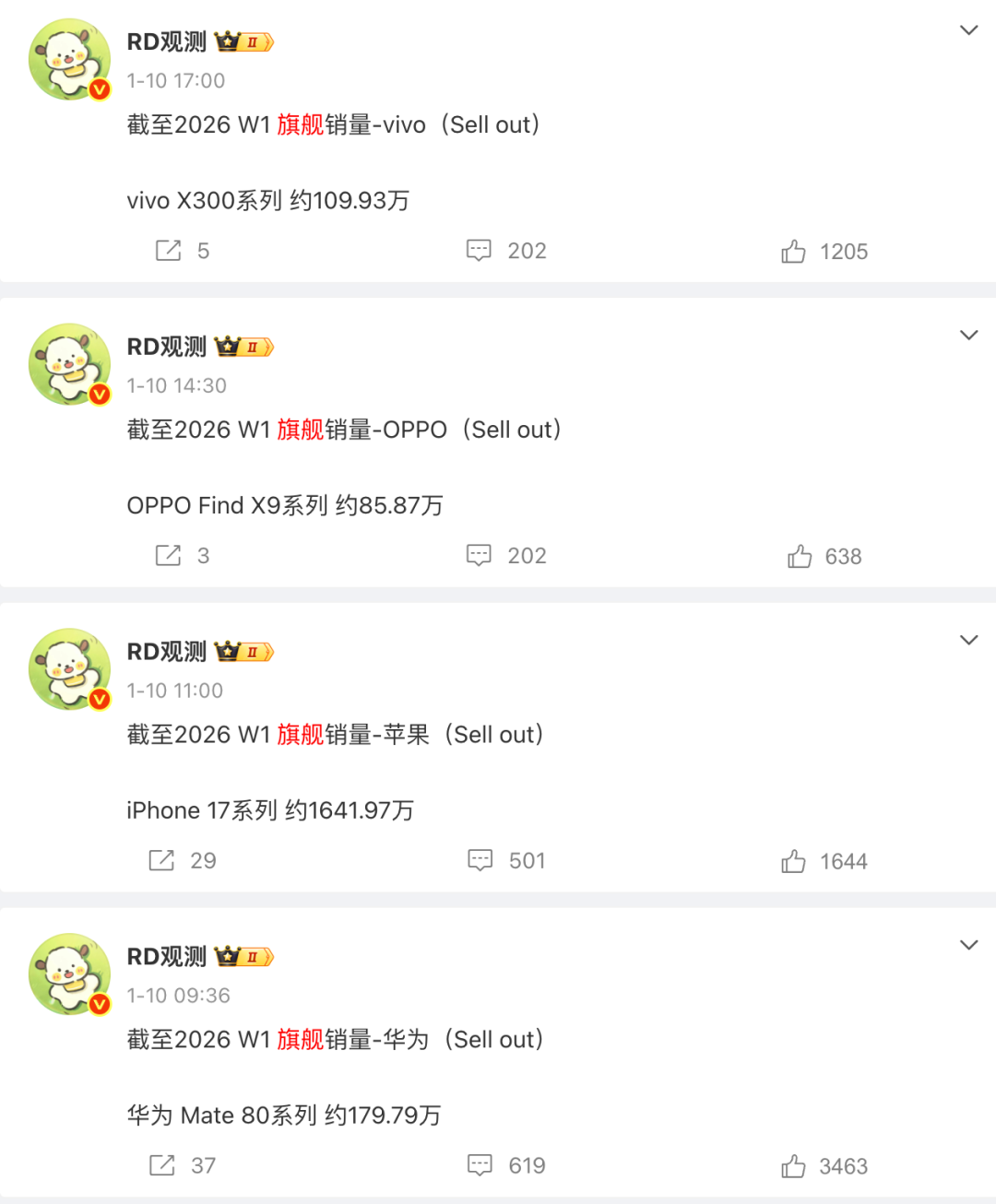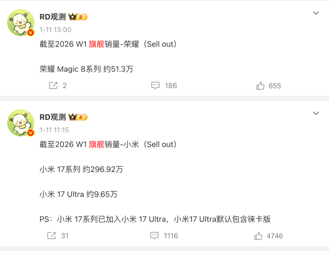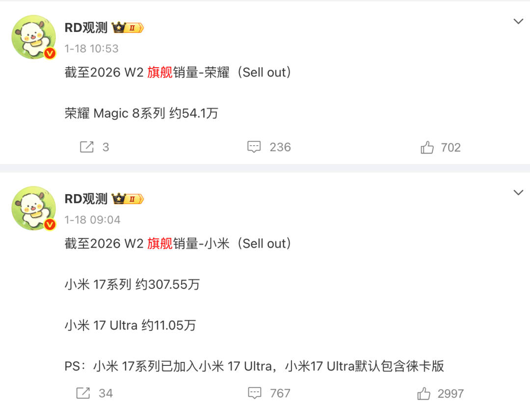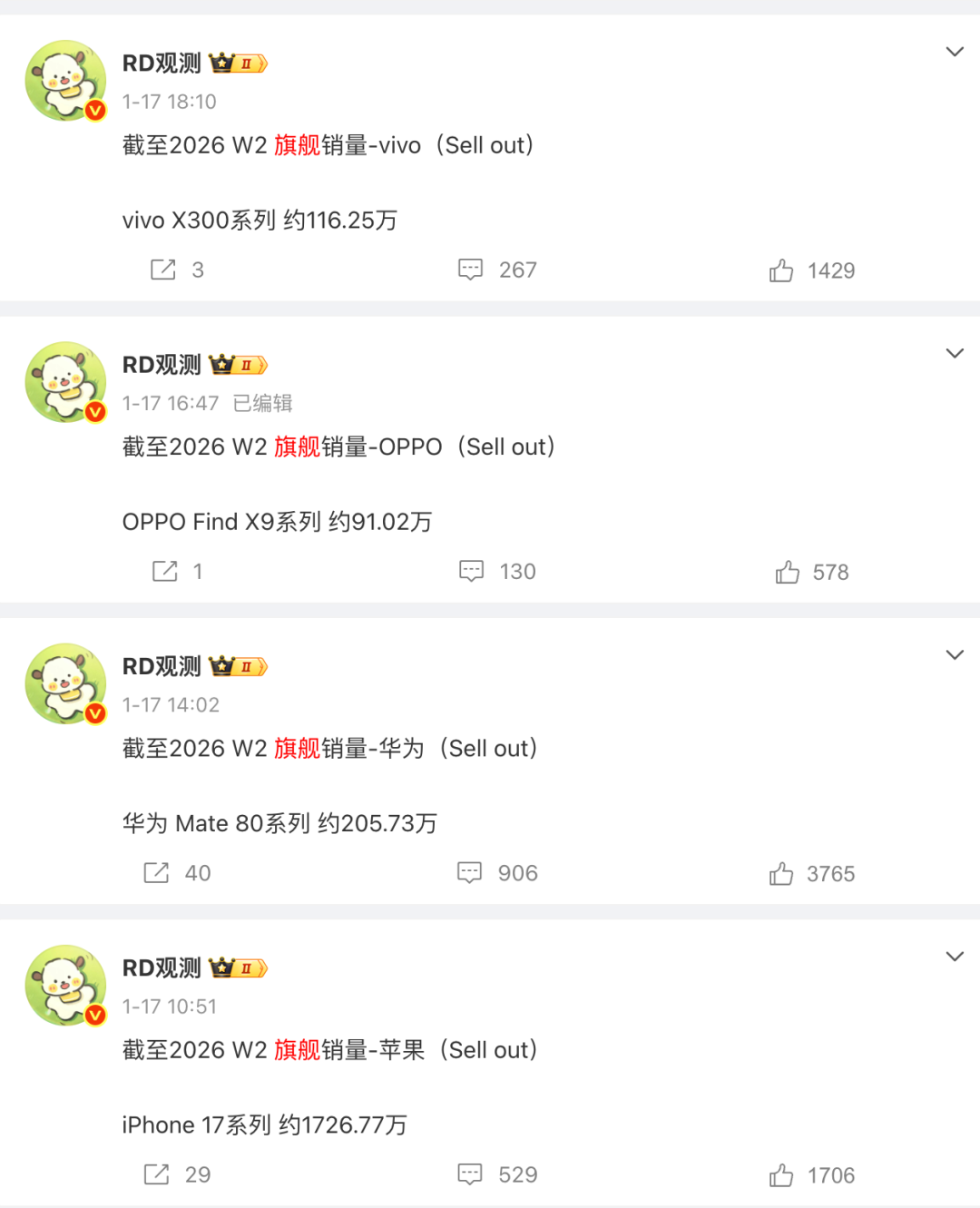 截至2026年第二周旗舰机销量数据出来了,我们简单罗列一下!