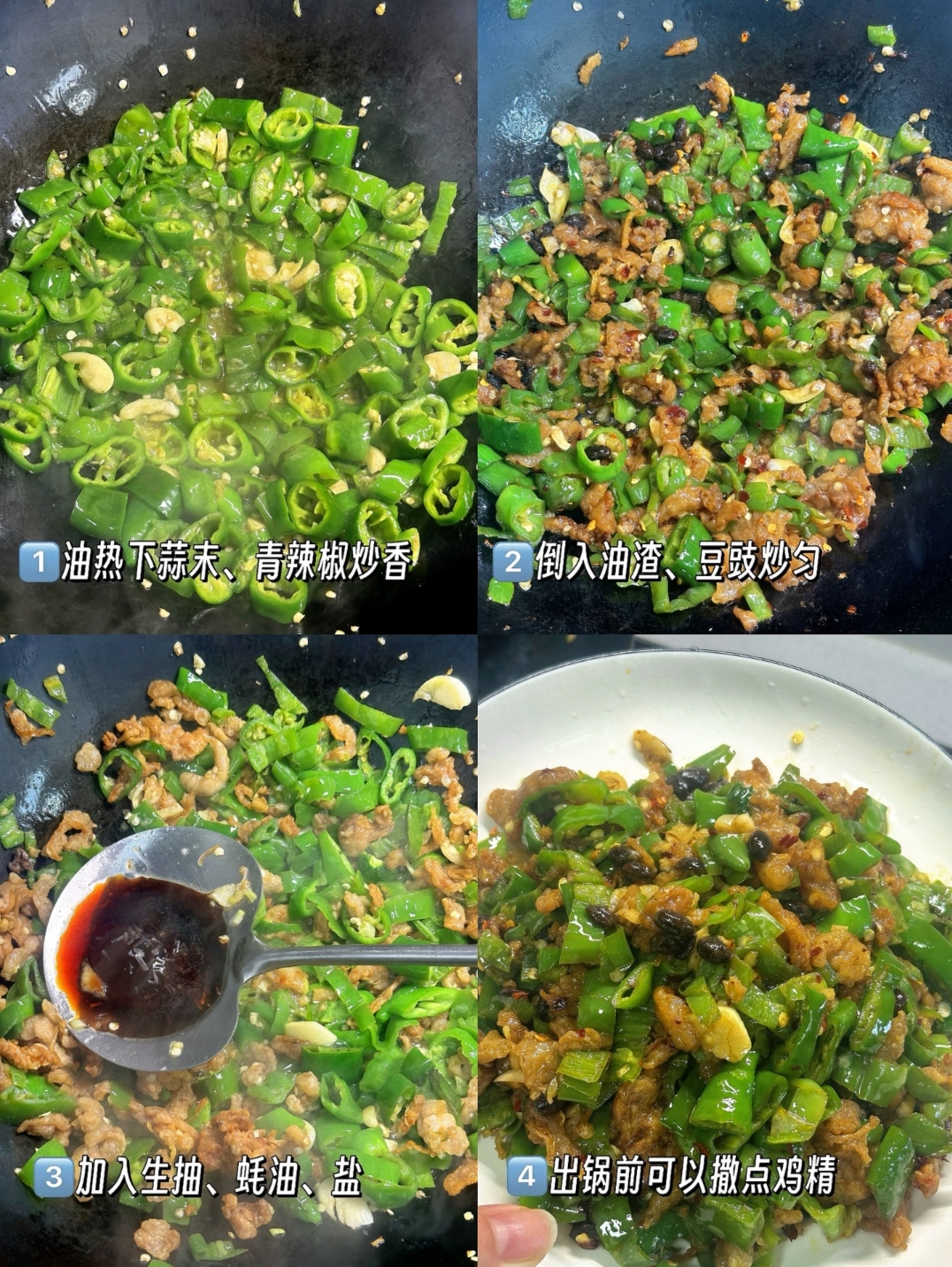 4. 口感平衡:油渣要脆、青椒要嫩、豆豉要软,三种口感层次分明才正宗