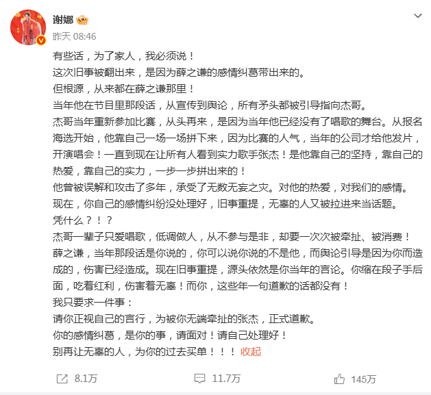 张杰的唱功起码是得到认可的,张杰和薛之谦一起参加“我型我秀”这个节目能夺冠,本身就是对唱功的一种认可。网络上很容易就能查到获得的奖项、专辑销量,这不都是对能力的认可吗,现在在互联网上能打的歌依然很多,传唱度很高,这不是仅仅依靠资本就能取得的成就,更不是谢娜可以帮忙实现的。