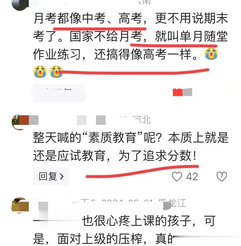 有家长吐槽,变态的教育,期末考堪比中高考,搞得像中高考一样严苛。