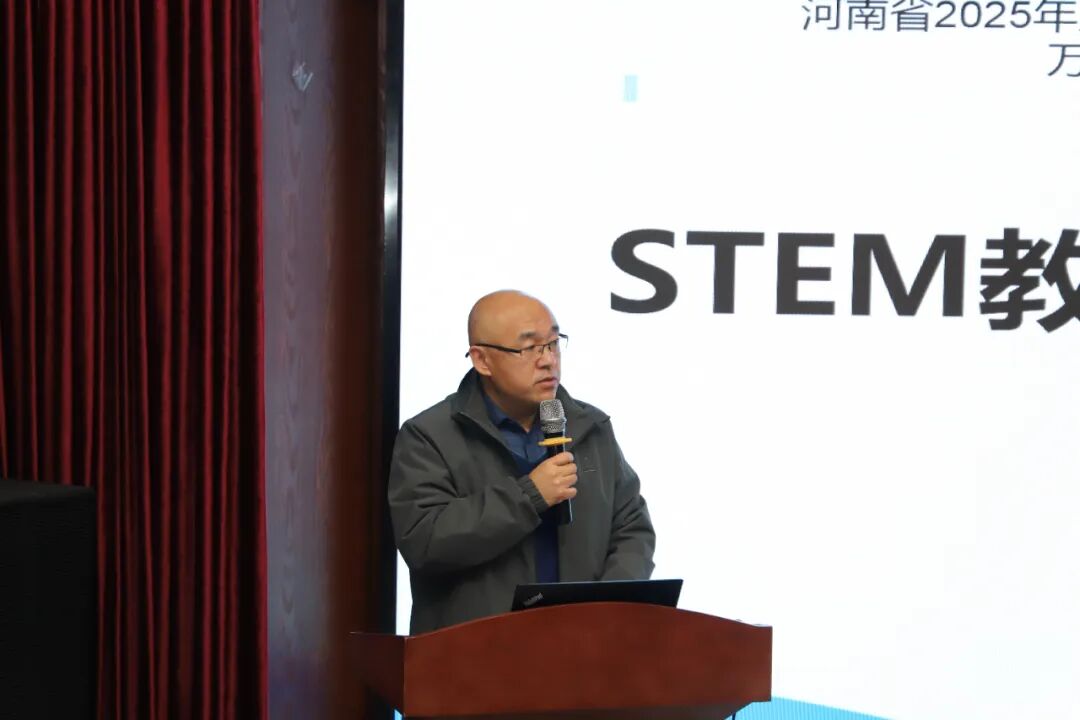 最后,河南省STEM教育研究中心副秘书长高贵宾发表讲话。他说,创新街紫荆小学在STEM教育方面进行了积极的探索,取得了明显的成效,相信今天的现场会能让大家有所收获。为深入实施《教育强国建设规划纲要(2024-2035年)》,教育部启动实施了基础教育综合改革试点工作,其中就包括STEM教育试点改革;而近期大家广泛热议的《教育部等七部门关于加强中小学科技教育的意见》的出台,实际上科技教育就是国际STEM教育的中国本土化表达。我省正在制定实施方案进行贯彻落实,希望各地各校抓住这一难得的历史机遇,向创新街紫荆小学学习,主动作为,先行先试,探索形成一批可复制、可推广的实验成果,为构建具有河南特色的现代化中小学STEM教育/科技教育体系作出贡献。