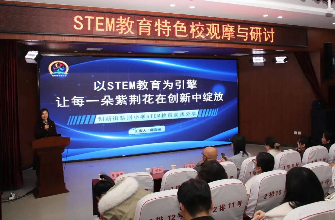 科技教育春风起,十年紫荆绽芳华。为贯彻落实《教育部等七部门关于加强中小学科技教育的意见》精神,2025年12月4日,河南省2025年义务教育师资薄弱环节改善暨中小学教师素质提升工程万名优秀中青年教师培育计划(小学科学班)STEM教育特色校观摩与研讨现场会,在郑州市管城回族区创新街紫荆小学举行。