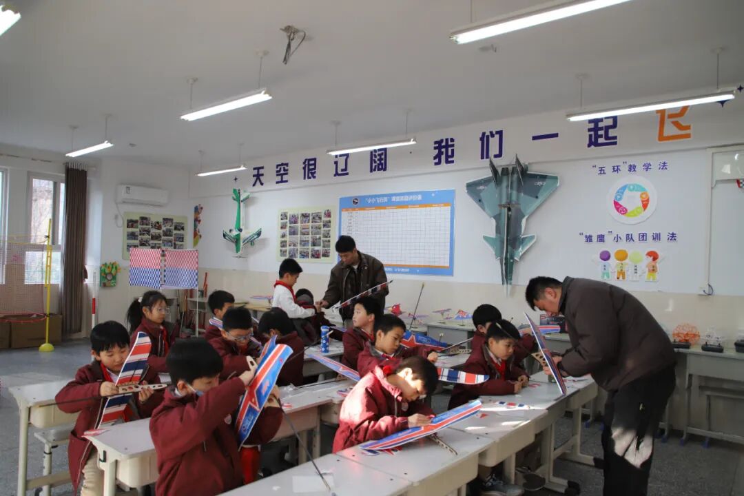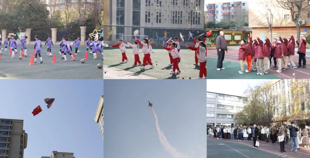 多彩展示互动体验来到学校操场上的动态展示区,足球社团展示了足球运控球和传接球,网球社团展示了活力网球操;航空模型社团的学员们开展了“弹射蝙蝠”高空弹射滑翔机专项训练,而社团教练精彩的飞行秀——遥控纸飞机携五星红旗精准巡航、战斗机模型拉烟飞行划破天际,展现了航模运动的视觉魅力与技术实力。