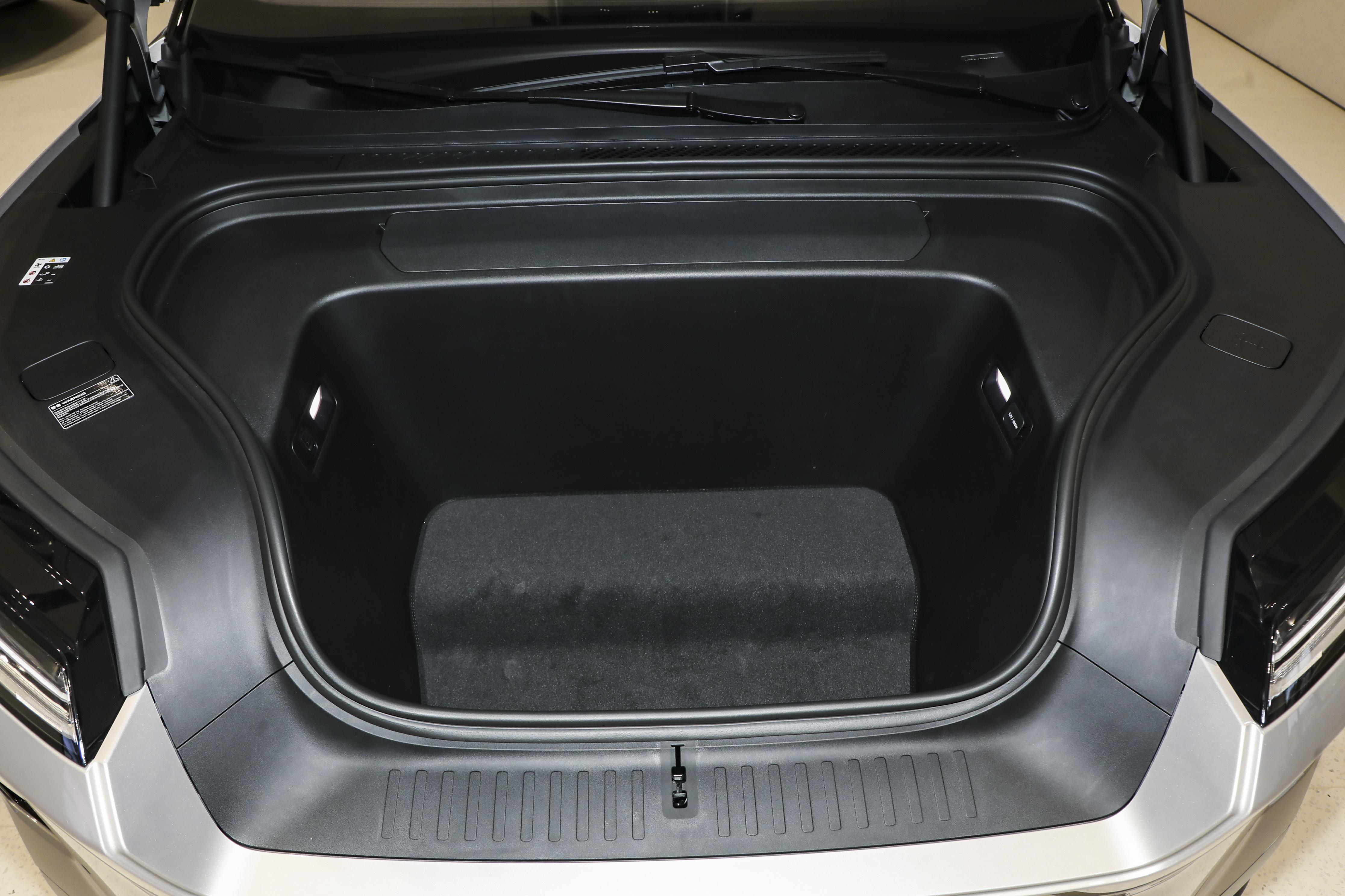我凑近车身仔细看,车身侧面有一条笔直的腰线,从车头贯穿到车尾,让整车看起来更加修长。隐藏式门把手不仅科技感爆棚,还能降低风阻,据说能提高个5% - 10%的续航里程呢,这设计太贴心了。轮毂是多辐式的,直径21寸,造型时尚动感,和车身风格完美适配。车尾部分,贯穿式尾灯超个性,长度超1米,点亮后辨识度超高,给整车添了一份时尚范儿。