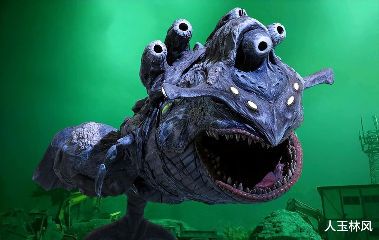 这只怪兽很明显是拿去年亚刻水下的那只大嘴怪兽改的,这只怪兽的嘴巴占据了整个身体的大半部分,一看就是非常不利于皮套演员活动的造型。