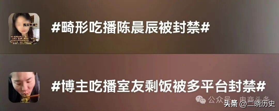 近日,“畸形吃播陈晨辰被封禁”“博主吃播室友剩饭被多平台封禁”这两个热搜词条引起关注。吃播爆火以来,不少吃播网红的玩法确实花样百出。不过,这两个网红到底是做了什么出格的事情,以至于遭到如此惩处,也是让人好奇。