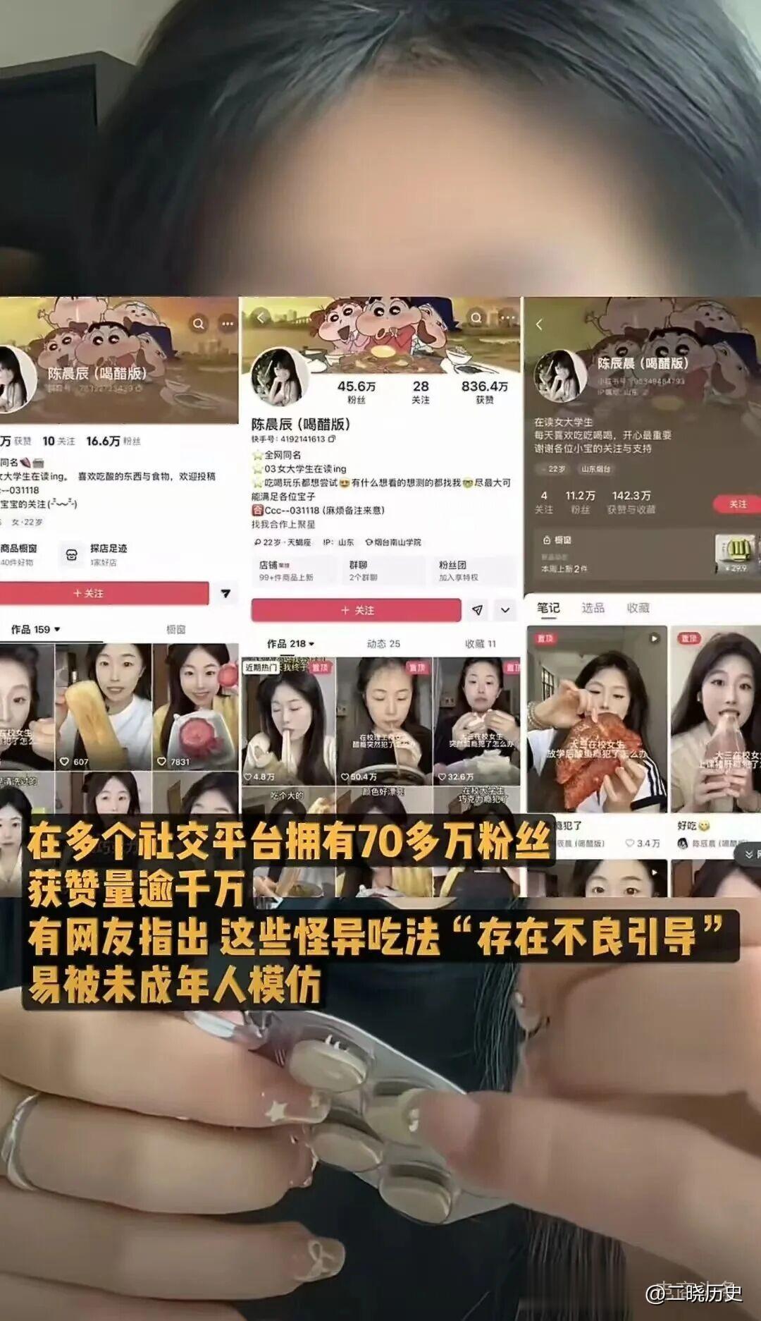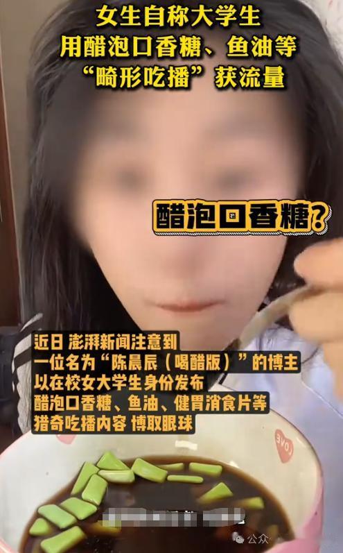 网红陈晨辰以在校女大学生的身份,发布了一系列的吃播视频。为了获取流量,陈晨辰确实玩得很大。